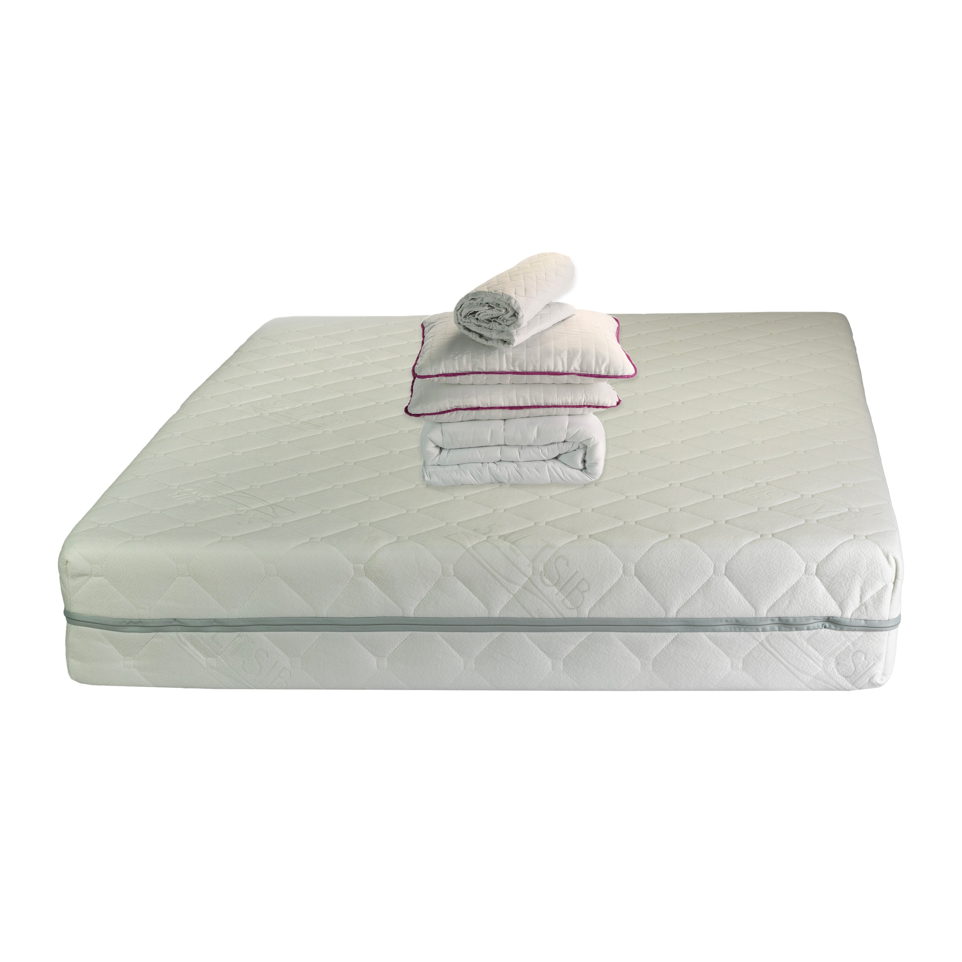 Materialul textil ce acopera salteaua este de tip tricot, tratat anticarieni si cu Aloe Vera, matlasat cu vata siliconica densitate 100 g/m2 pe suport TNT de 40 gr/mp. Husa este detasabila si lavabila la 30-40 grade.