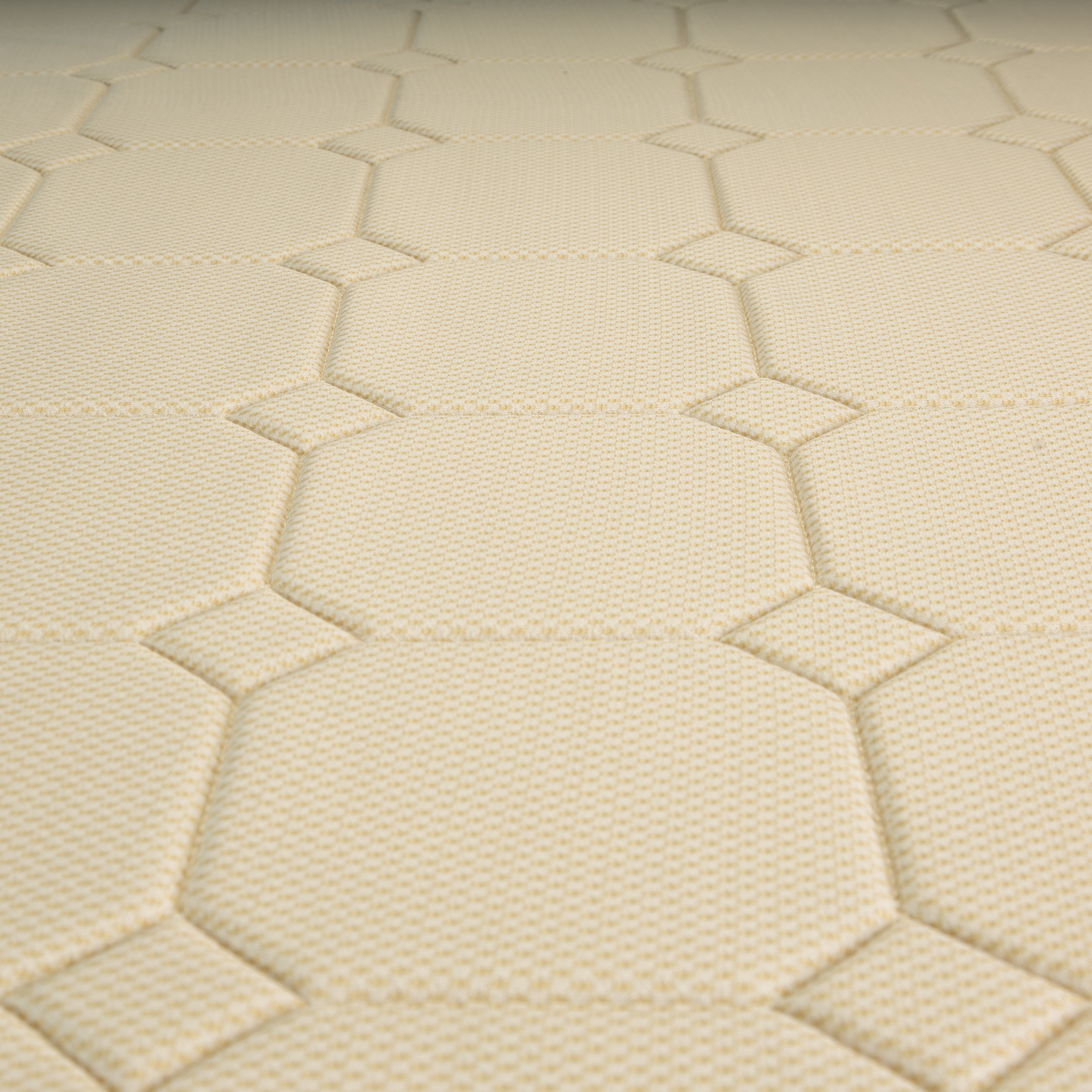 Materialul exterior este compus din 3 straturi matlasat complet din Jacquard (70%PP si 30% Poly) impreuna cu un strat de vatelina de 200gr / mp si TNT 20gr/ mp.