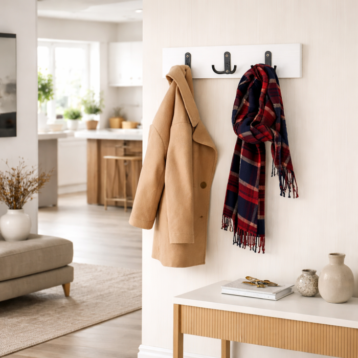Cuierul de perete este un accesoriu practic si estetic, conceput pentru a imbunatati organizarea si pentru a valorifica eficient spatiul disponibil.