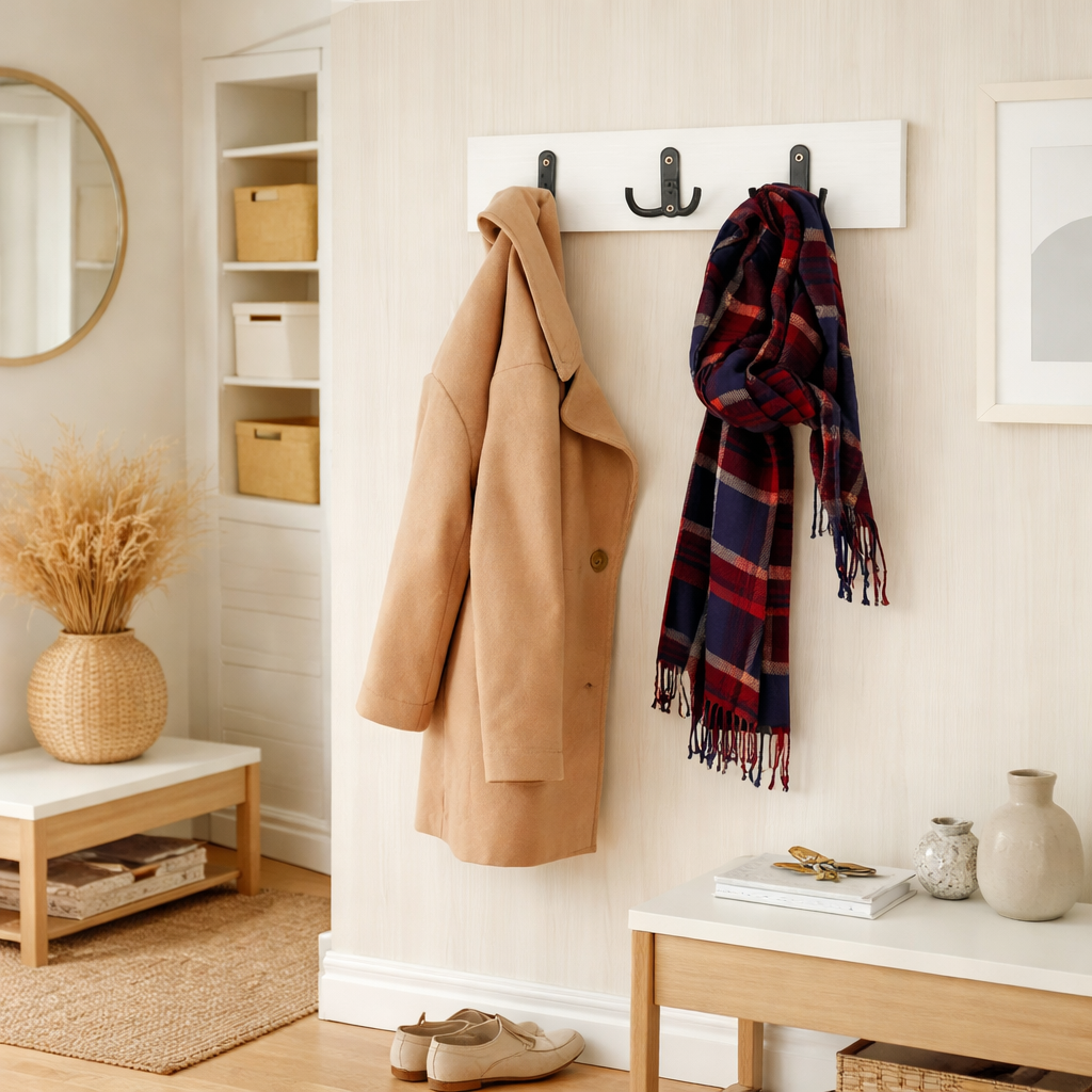 Cuierul de perete cu 3 agatatori Alb este alegerea ideala pentru organizarea rapida si eficienta a spatiilor mici, oferind un echilibru perfect intre functionalitate si design modern. Conceput special pentru holuri inguste, birouri, dormitoare sau spatii comerciale, acest cuier optimizeaza spatiul vertical si contribuie la mentinerea ordinii zilnice. Design modern si finisaj elegant alb