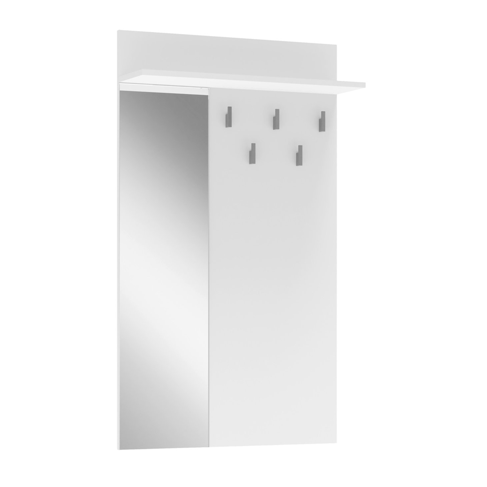 Cuier perete cu oglinda HM Lima PR-1, Pal Melaminat, 5 agatatori, alb