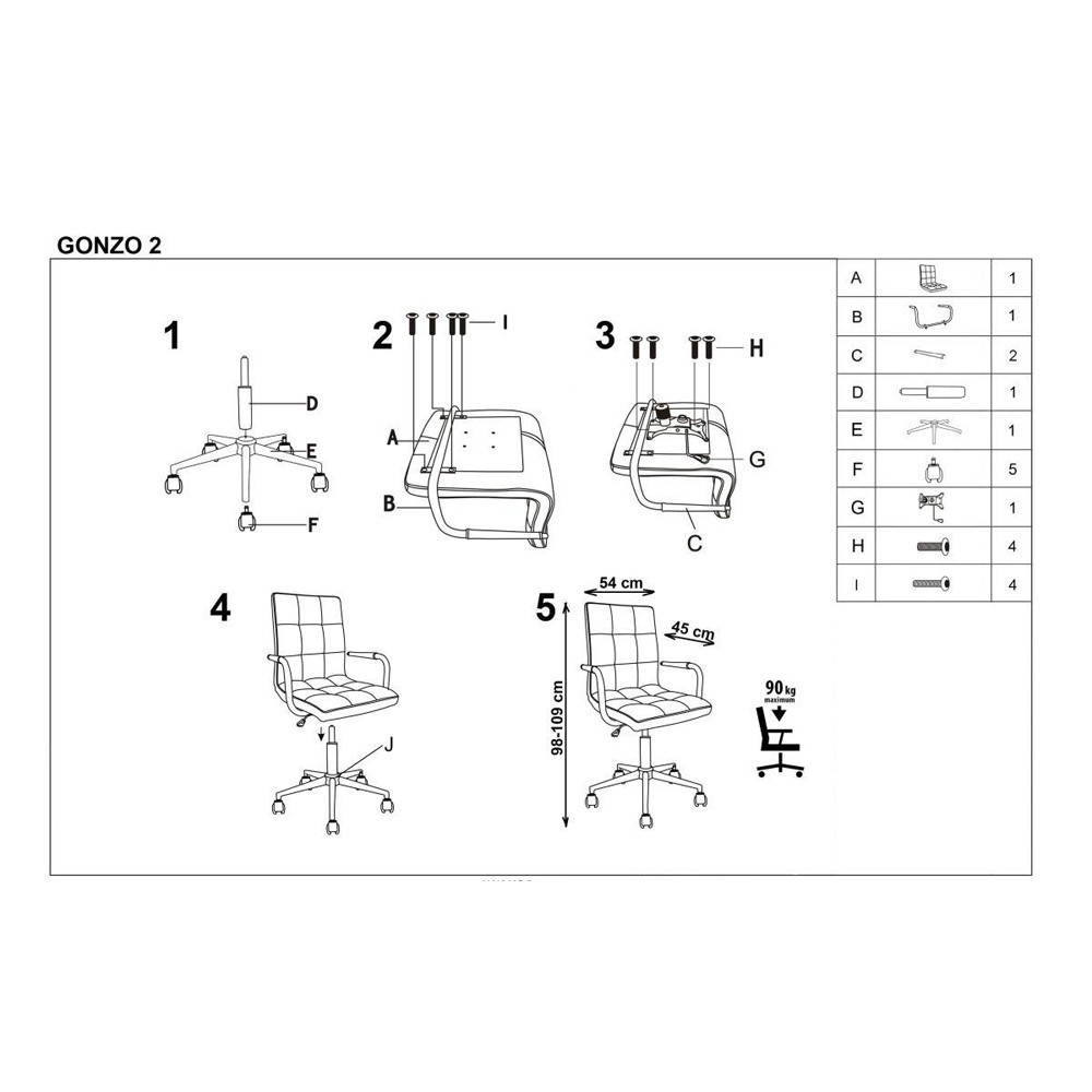 Scaunul Gonzo 2 este prevazut cu piston de gaz pentru ajustarea inaltimii sezutului de la 40 la 52 cm.