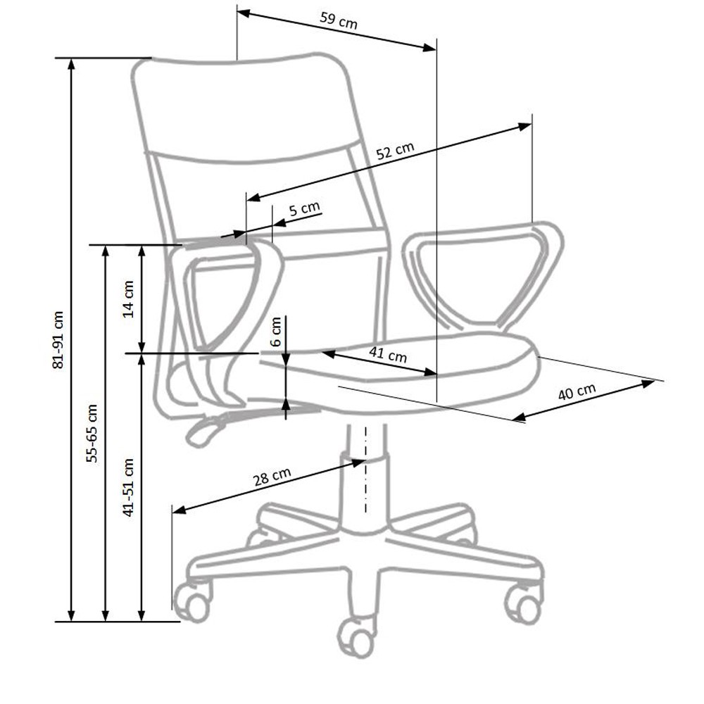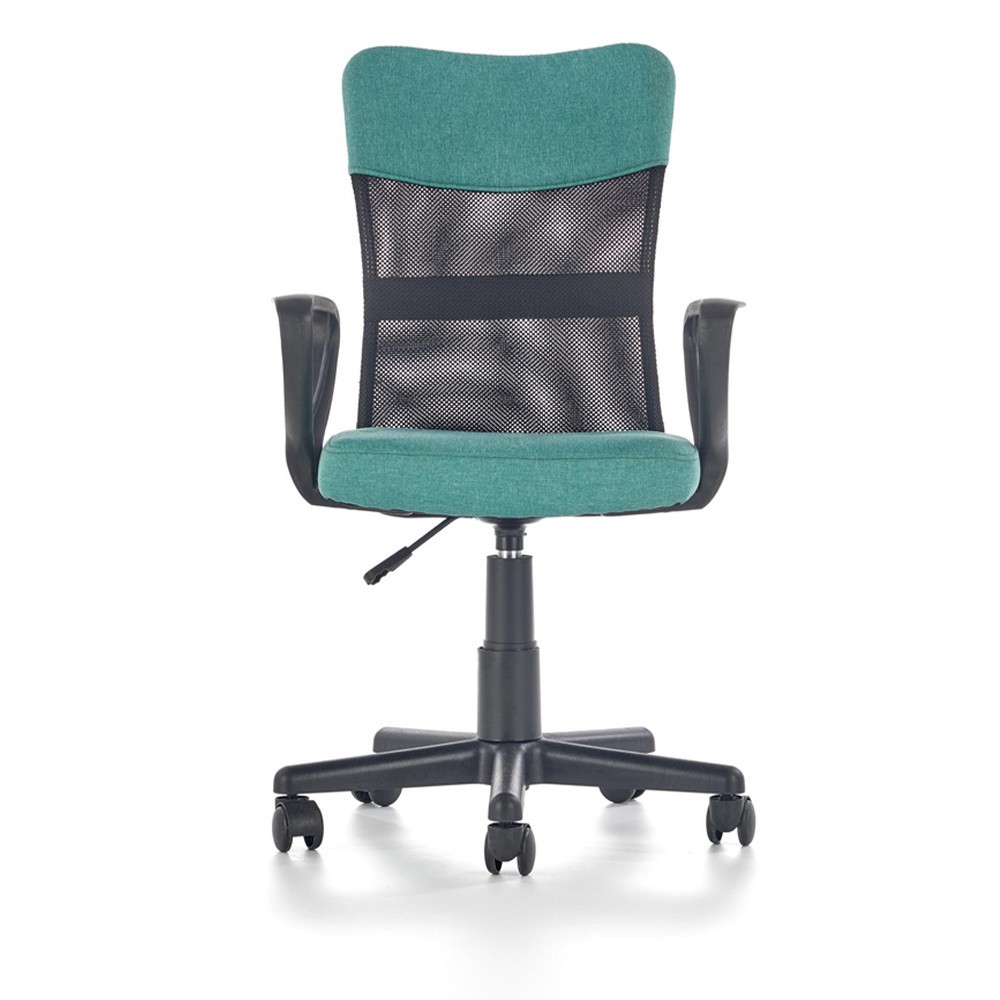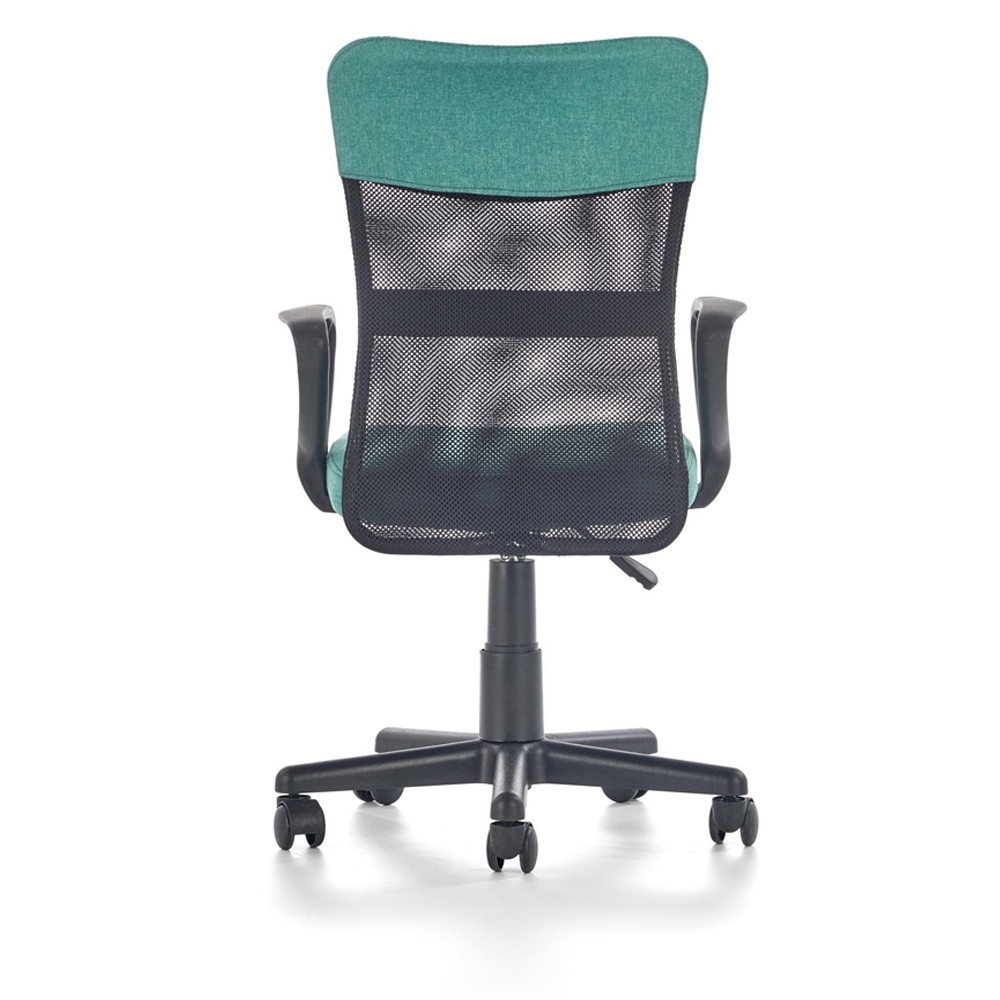 - spatarul este tapitat cu mesh de culoare neagra si stofa turcoaz. Tesatura de tip mesh impiedica aparitia transpiratiei, oferind un grad de aerisire optim.