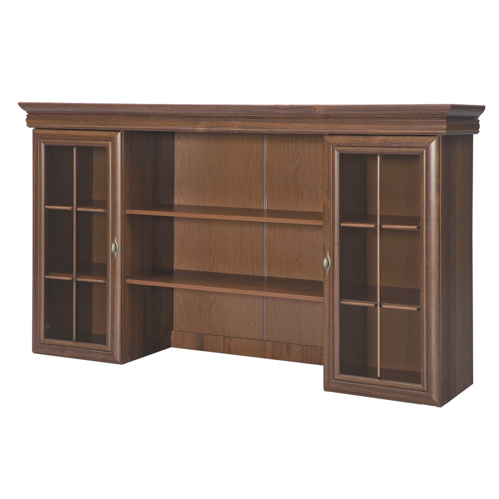 Vitrina este prevazuta cu usi din sticla ce asigura expunerea obiectelor decorative.