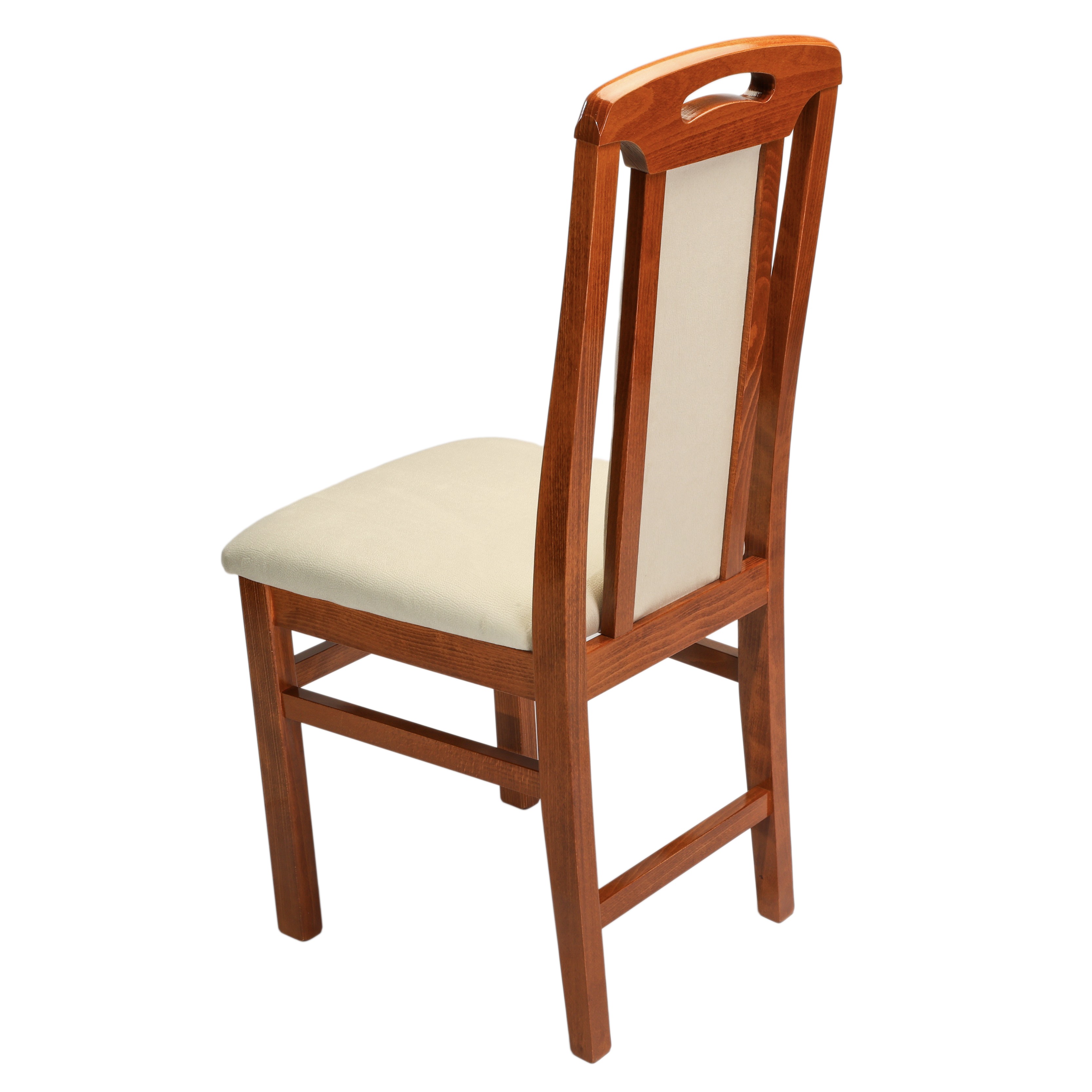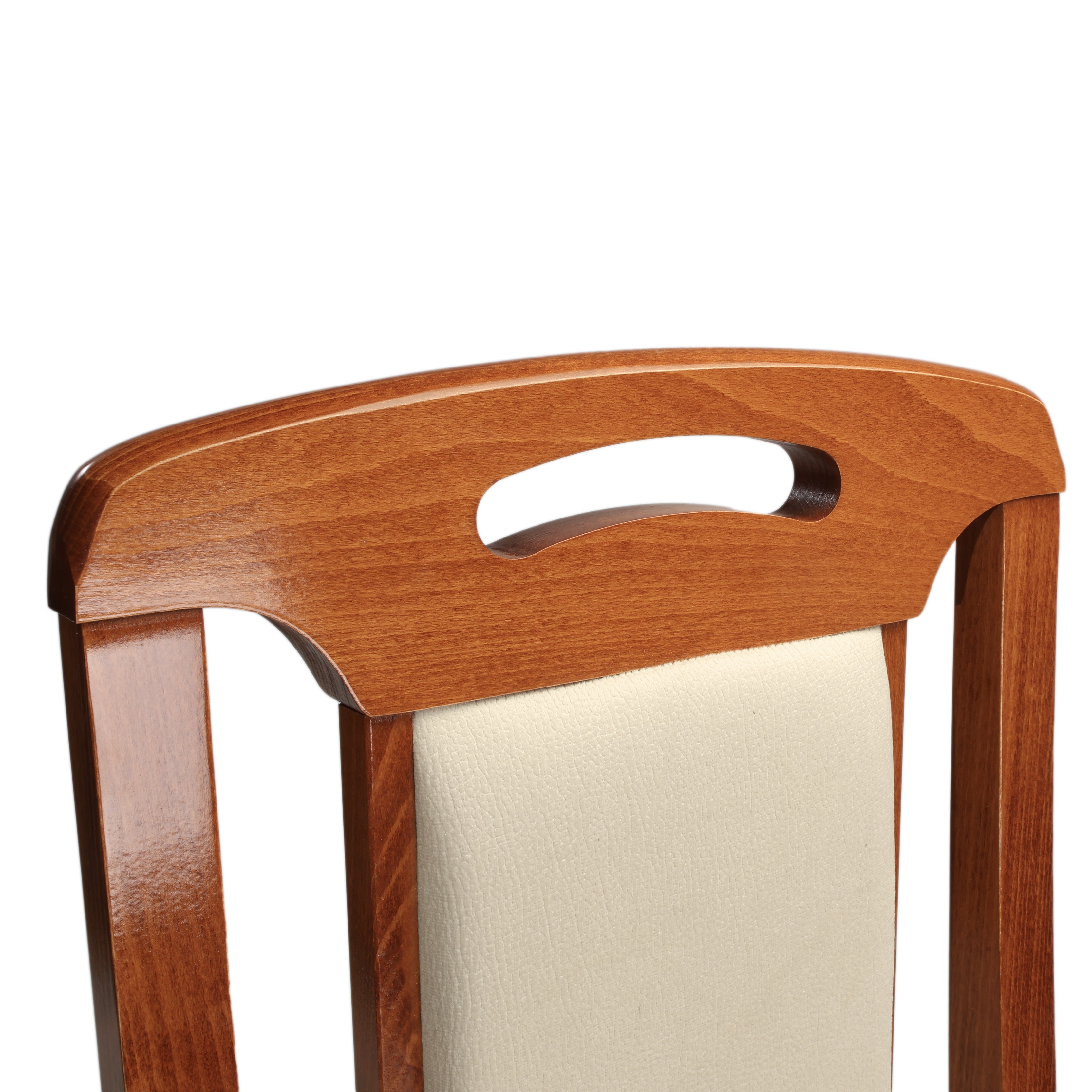Cadrul scaunul este realizat din lemn de fag iar sezutul si spatarul partial tapitat cu stofa placuta la atingere.