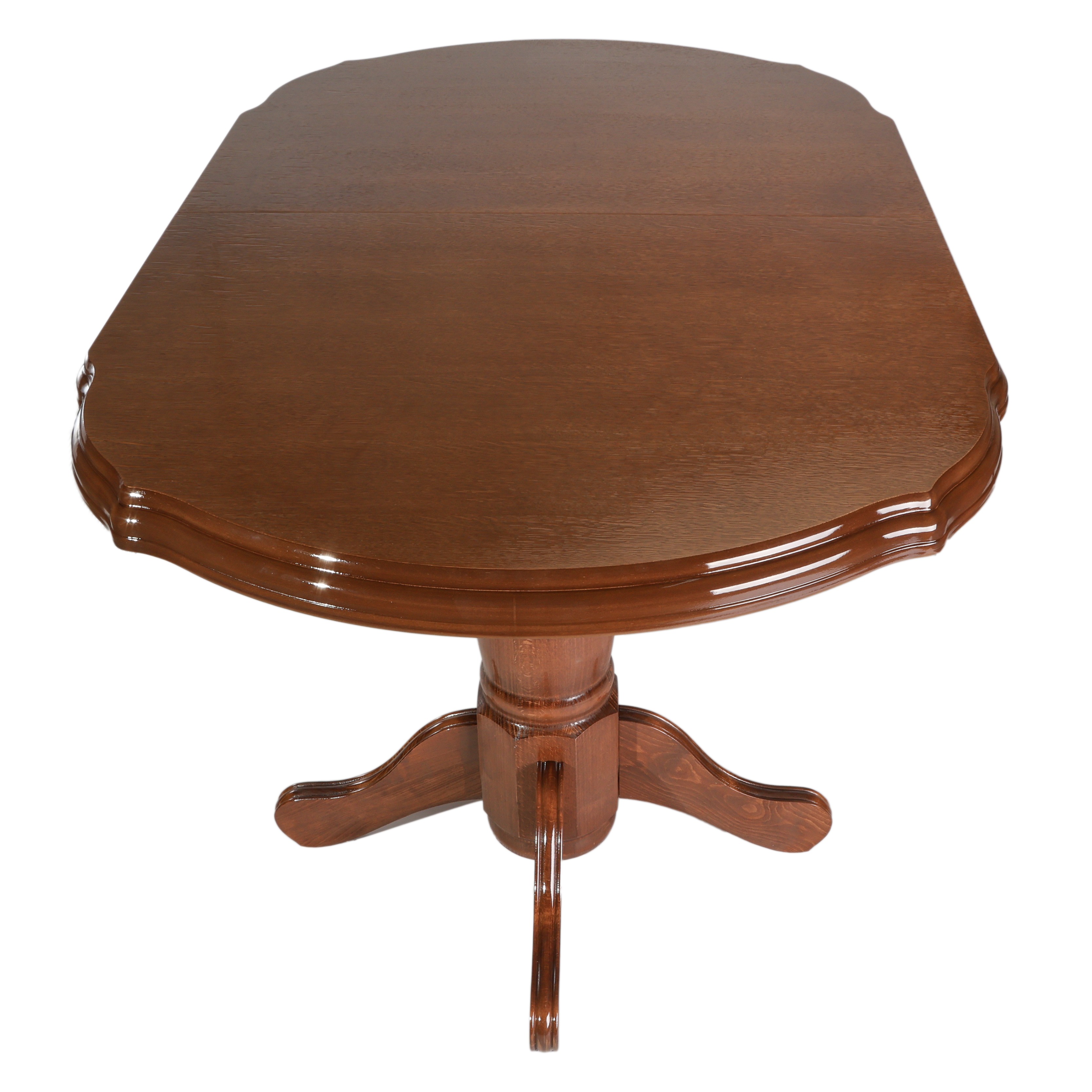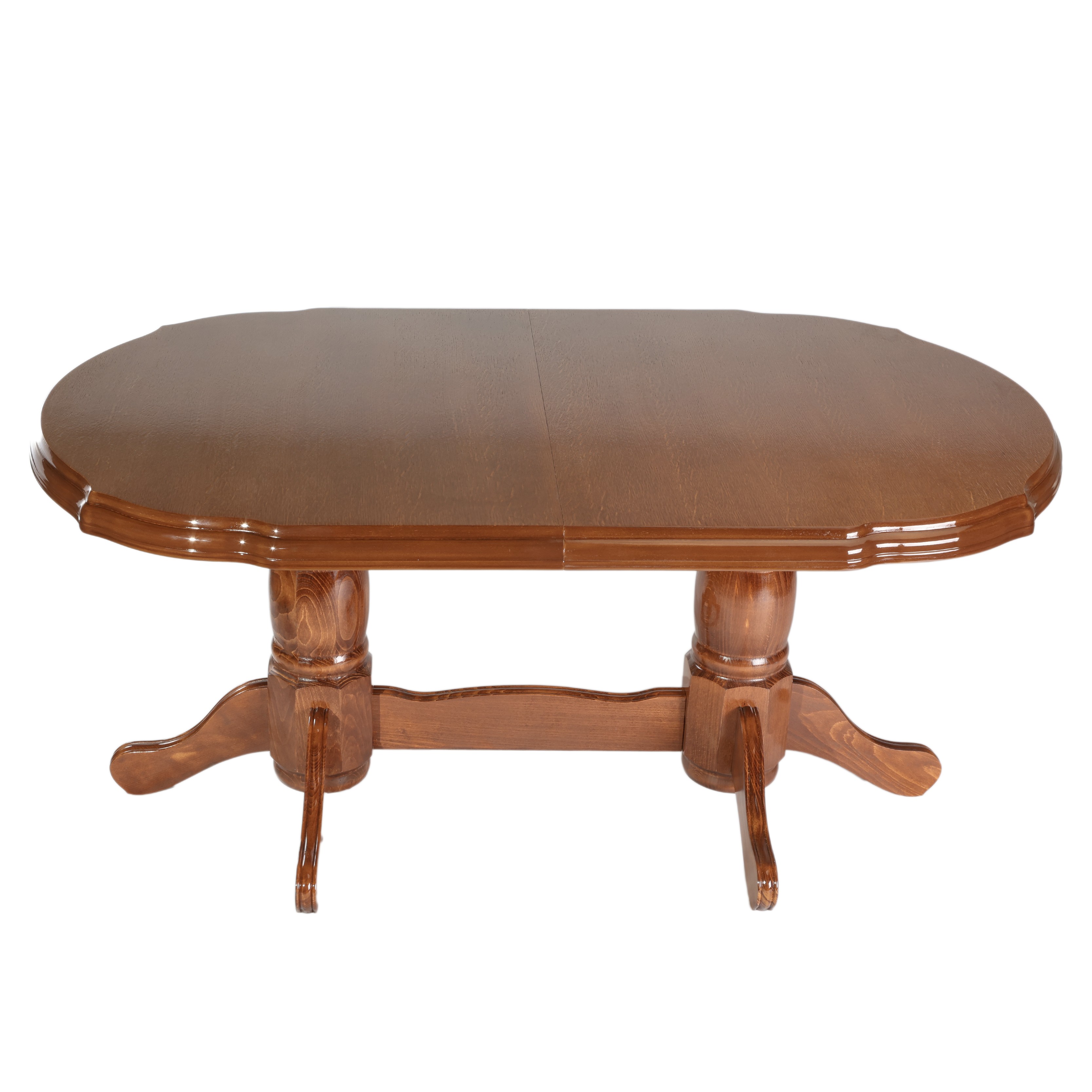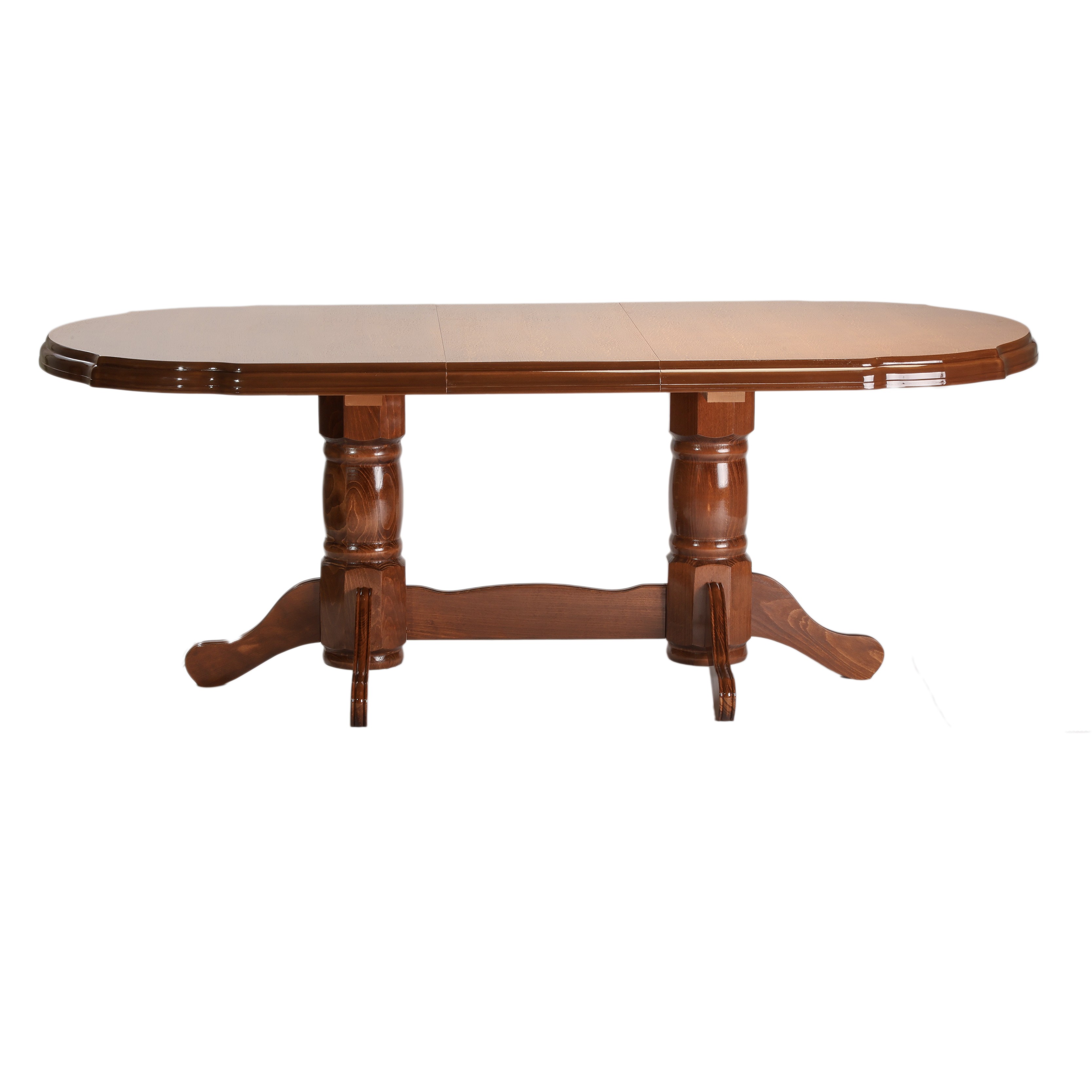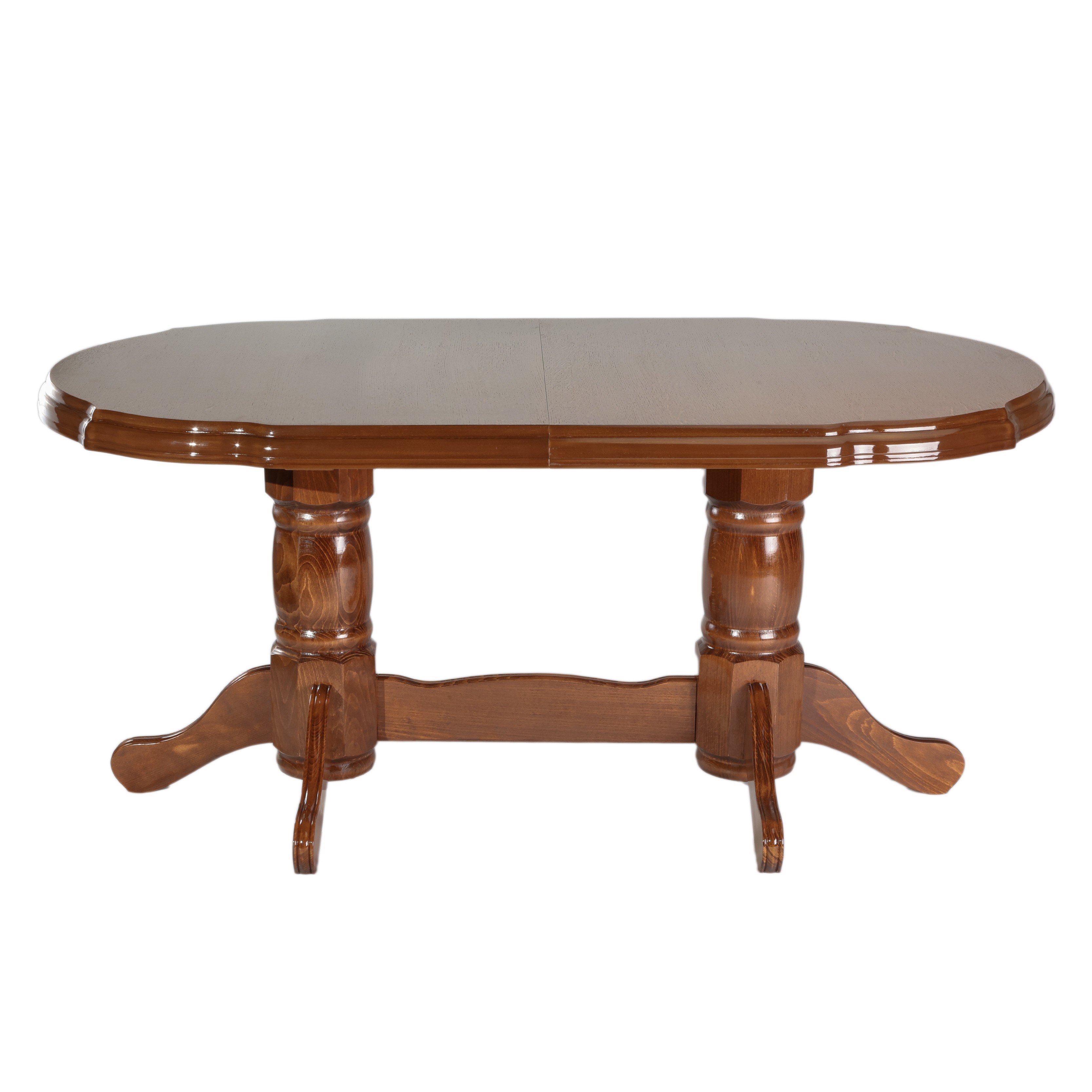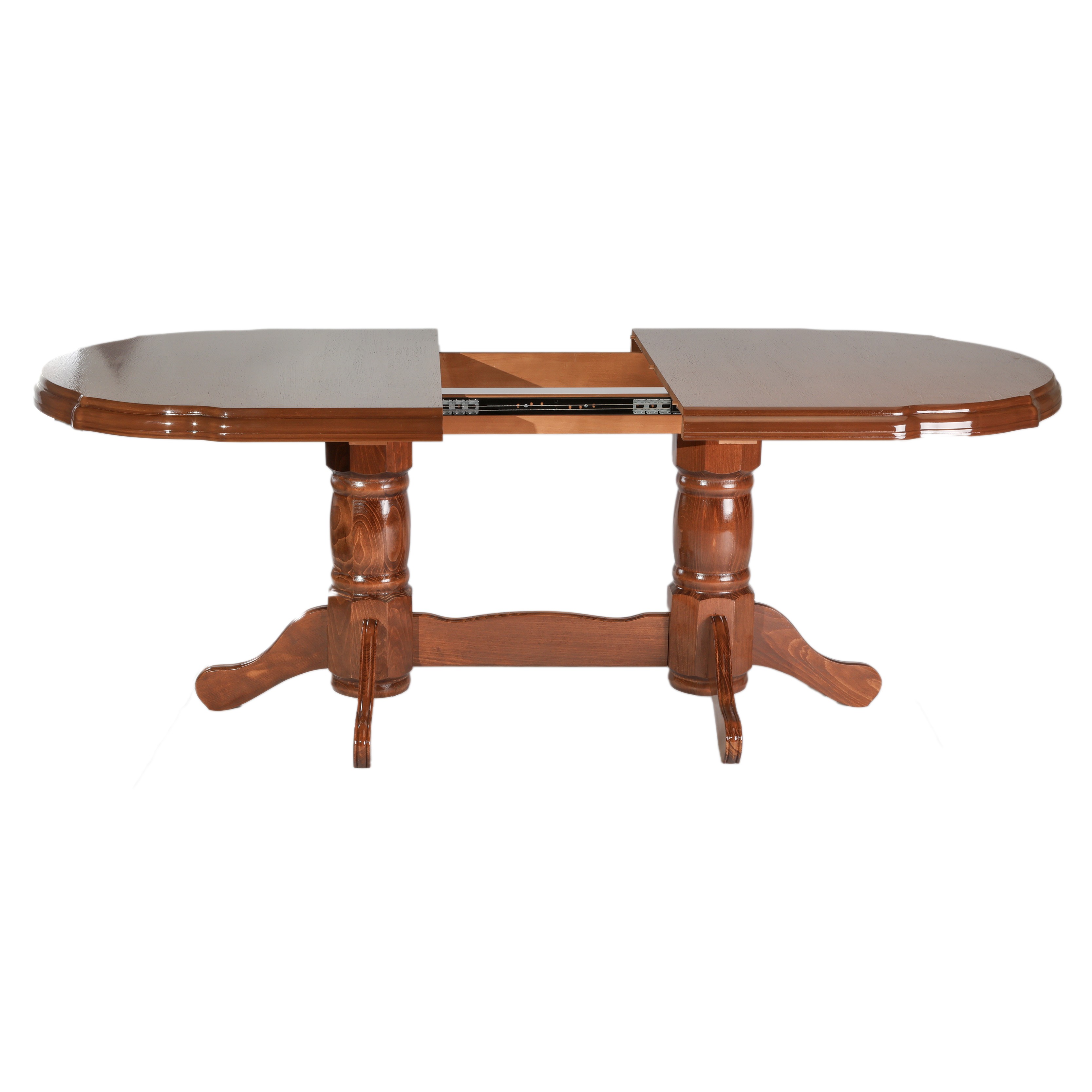 Masa extensibila cu blat din MDF furniruit lacuit  si structura din lemn masiv lacuit este o masa impunatoare, eleganta, potrivita incaperilor in stil clasic.