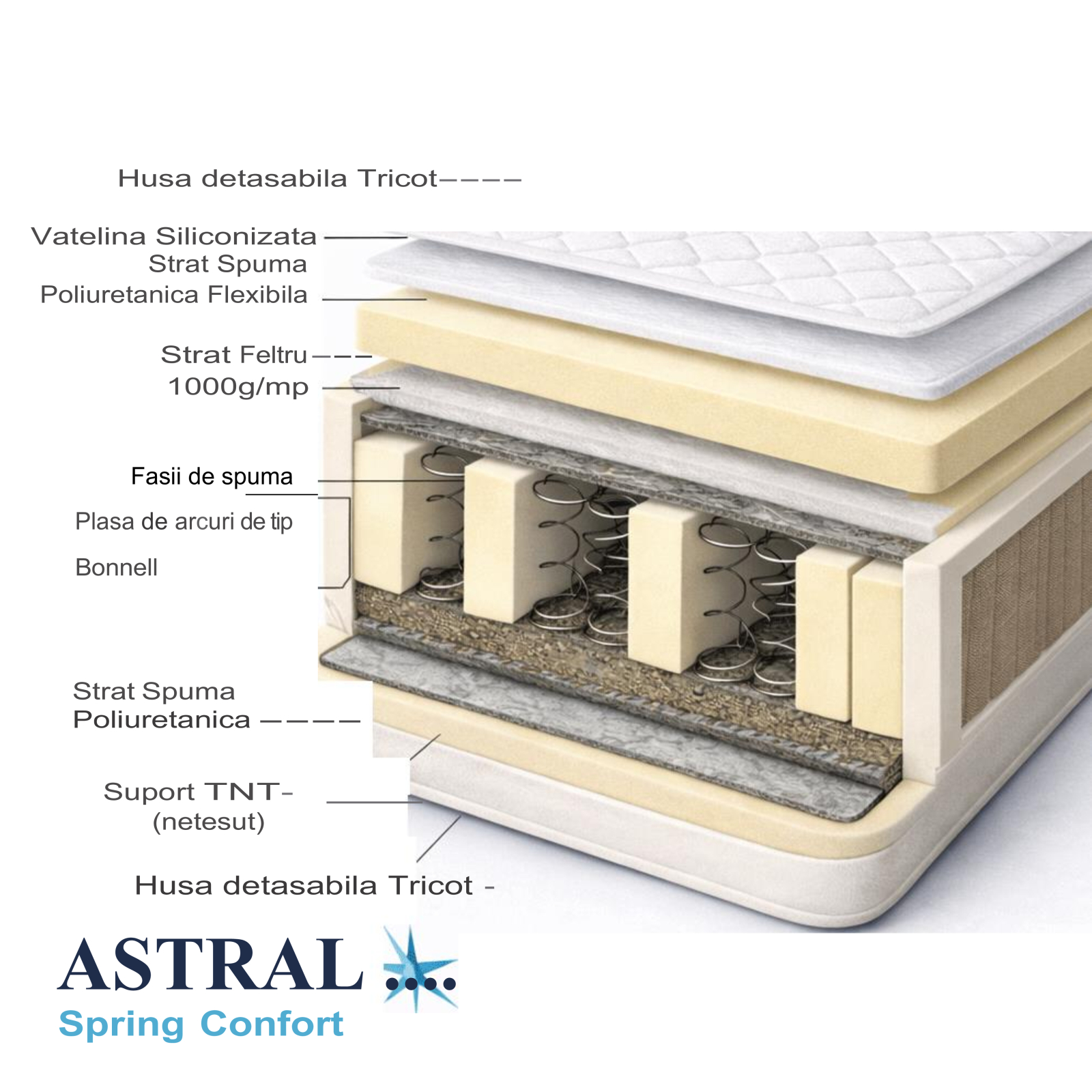 Saltea ortopedica Astral Spring Comfort 160x200 cm – durabilitate ridicata si sustinere ferma pentru un somn odihnitor
