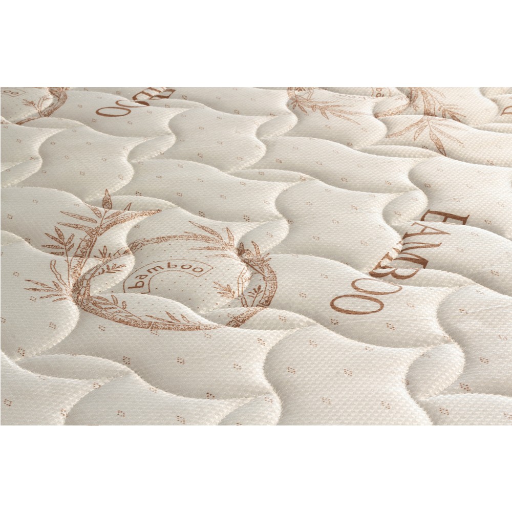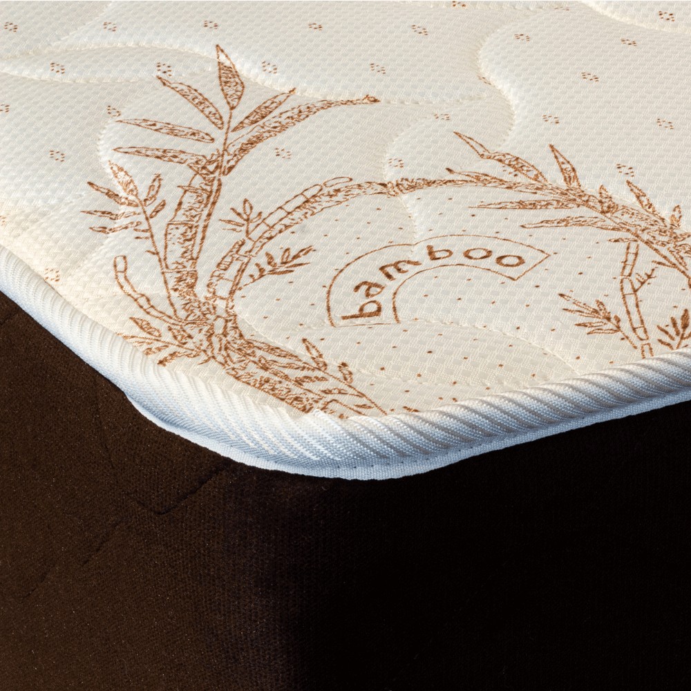 Salteaua este prevazuta cu husa tip jacard, design Bamboo, cu densitate de 100 gr/mp, matlasata cu vatelina de 200 gr./mp, pe suport TNT 40 gr/mp. pe ambele fete.