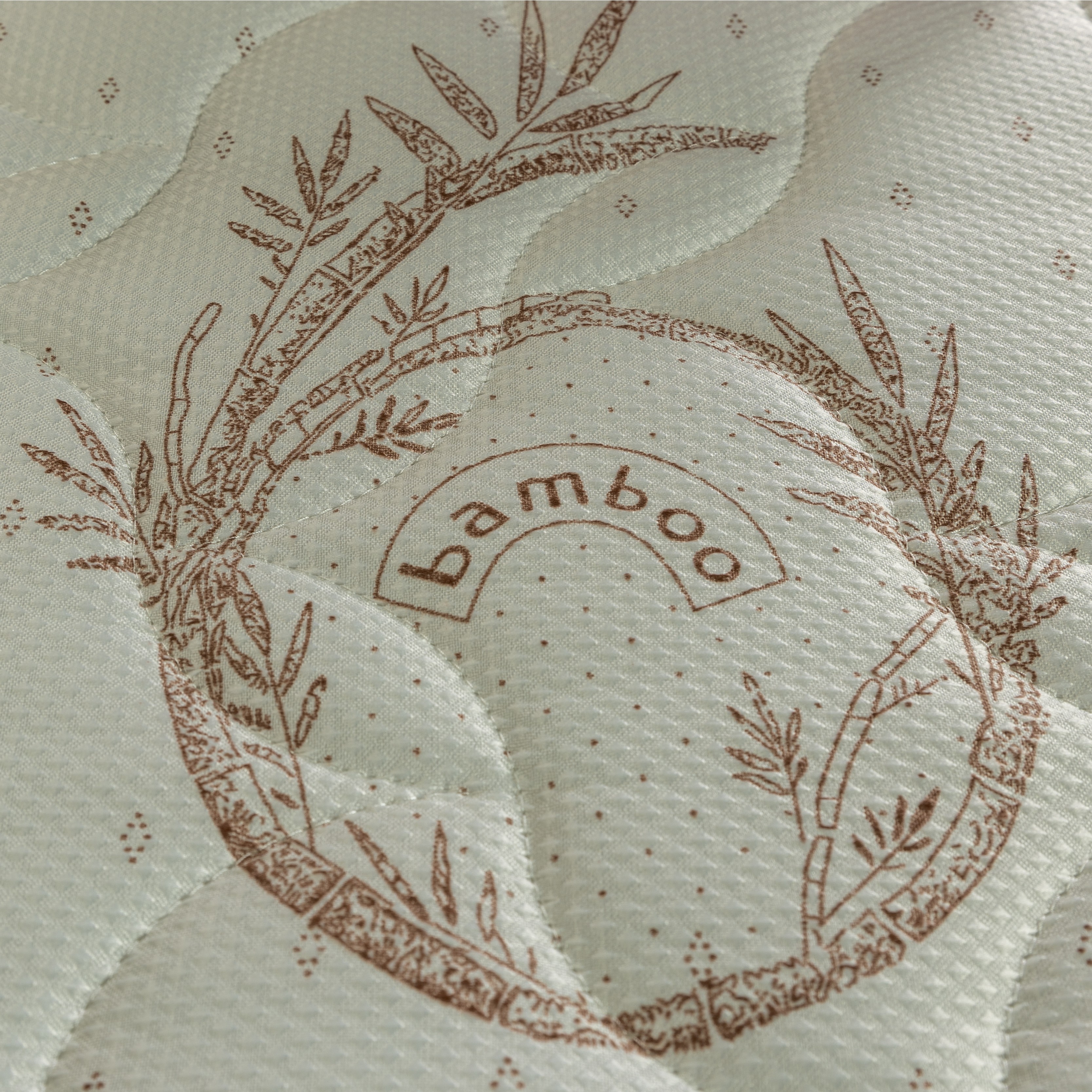 Salteaua este prevazuta cu husa tip jacard, design Bamboo, cu densitate de 100 gr/mp, matlasata cu vatelina de 200 gr./mp, pe suport TNT 40 gr/mp. pe ambele fete.