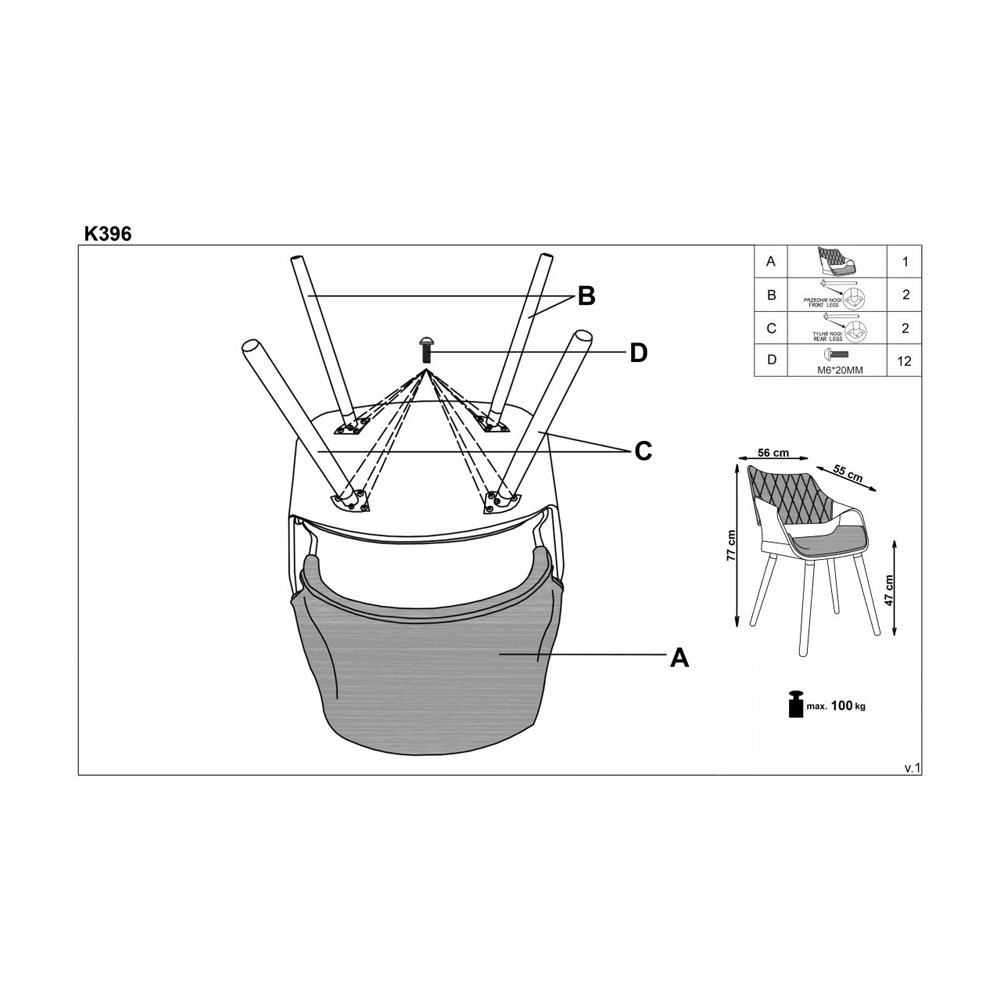 Scaunul K396 este solutia perfecta pentru interioare moderne. Scaunul este tapitat cu stofa eleganta, rezistenta si placuta la atingere, iar picioarele sunt din lemn ce ofera stabilitate si durabilitate.