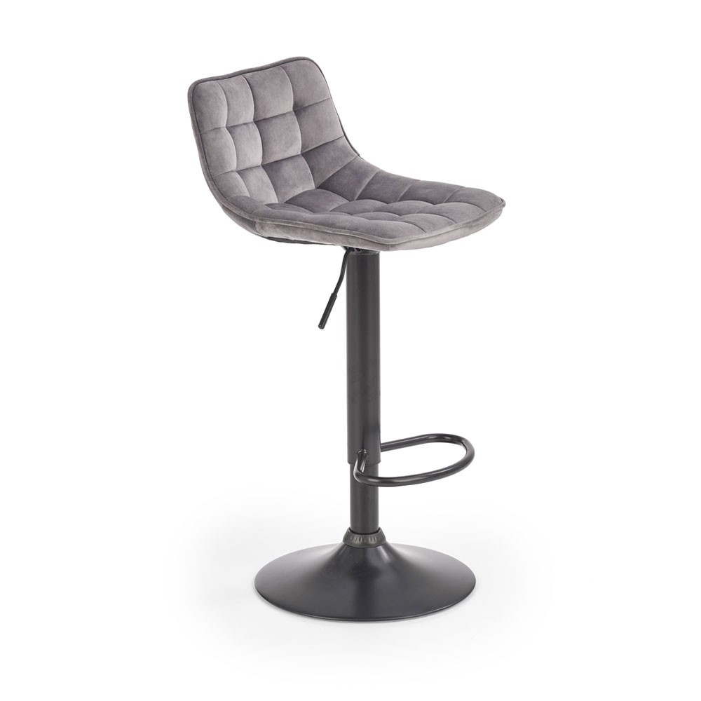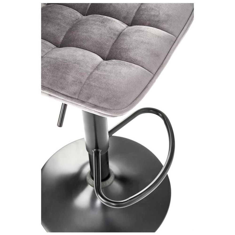 Scaun bar HM H95, baza metalica, suport picioare, stofa tip plus, ergonomic, rotativ, 100 kg, gri