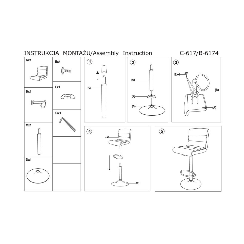 Scaunul de bar SL C617 este un scaun cu finisaje din otel cromat si tapitat cu piele ecologica. Baza scaunului din otel cromat, reglarea inaltimii se realizeaza printr-un piston hidraulic, unghi de rotire - 360 de grade.