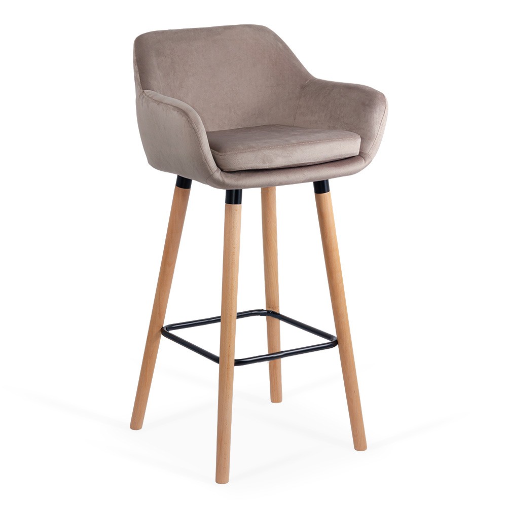 Scaun de bar ABS 1271, cu spatar, catifea, suport picioare, cadru lemn, fix, 110 kg
