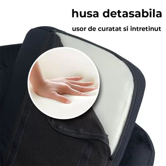 Perna de sezut poate si detasata fiind prevazuta cu fermoar si faciliteaza curatarea.