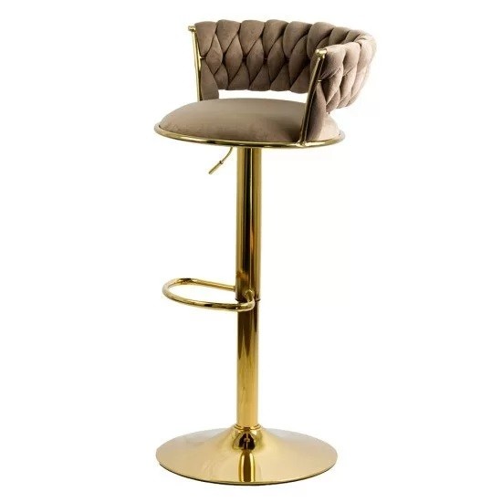 Scaun de bar ABS118, catifea, suport picioare, metal cromat auriu, rotatie 360 grade, 100 kg