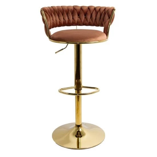 Scaun de bar ABS118, catifea, suport picioare, metal cromat auriu, rotatie 360 grade, 100 kg