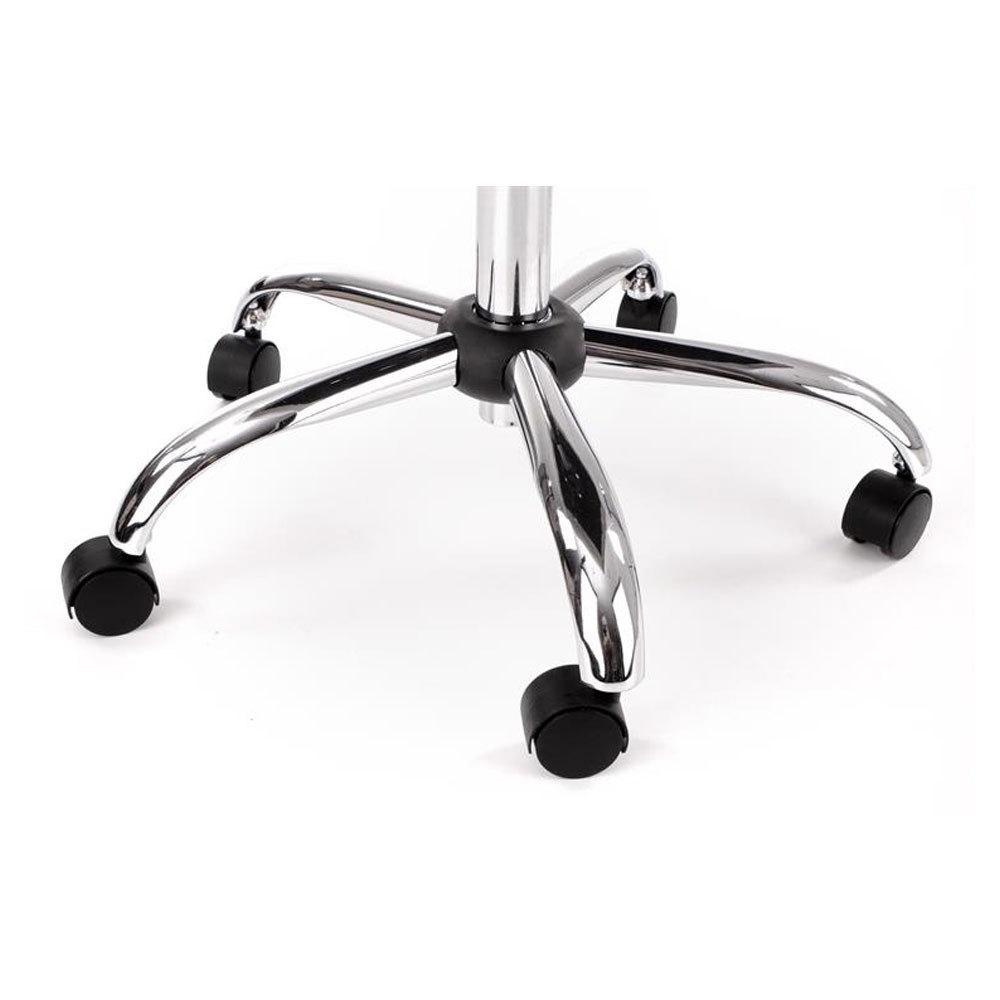 Baza cromata prevazuta cu 5 roti din polipropilena asigura o rezistenta sporita si o mobilitate optima produsului. Inaltimea scaunului se poate regla prin simpla actionare a manetei amplasate sub sezut.