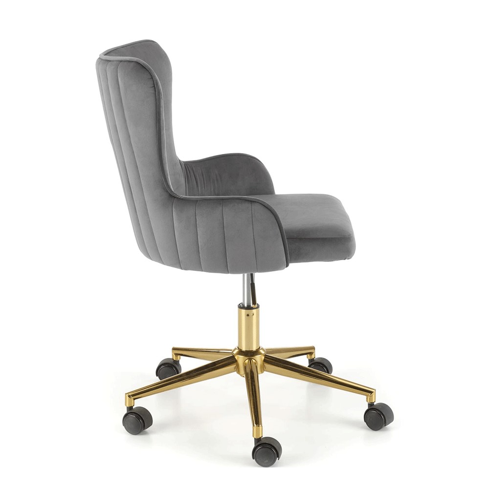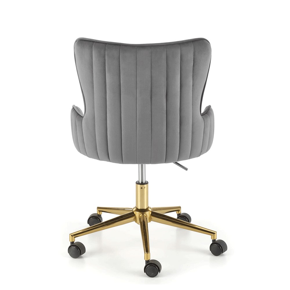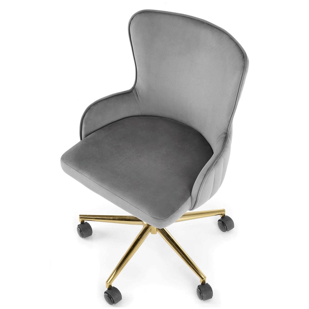 Aduceti stilul glam deco si eleganta vintage spatiului dumneavostra de lucru cu accentele aurii si textura luxoasa din catifea a scaunului HM Timoteo. Scaunul va atrage toate privirile si va oferi relaxare chiar in timpul lucrului la birou datorita captuselii groase din spuma si tapiteriei moale din catifea.