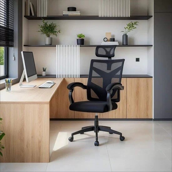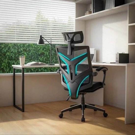 Scaunul include o tetiera integrata din mesh, proiectata pentru a sustine corect zona cervicala si a reduce disconfortul in zona gatului. Forma ergonomica contribuie la mentinerea unei pozitii sanatoase, indiferent de durata utilizarii.