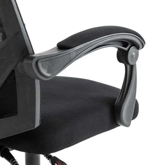 Spatarul realizat din mesh respirabil asigura o buna ventilatie, prevenind acumularea de caldura si mentinand o senzatie placuta chiar si dupa multe ore de utilizare. Sezutul tapitat cu stofa de calitate adauga un plus de confort, esential in perioadele solicitante.