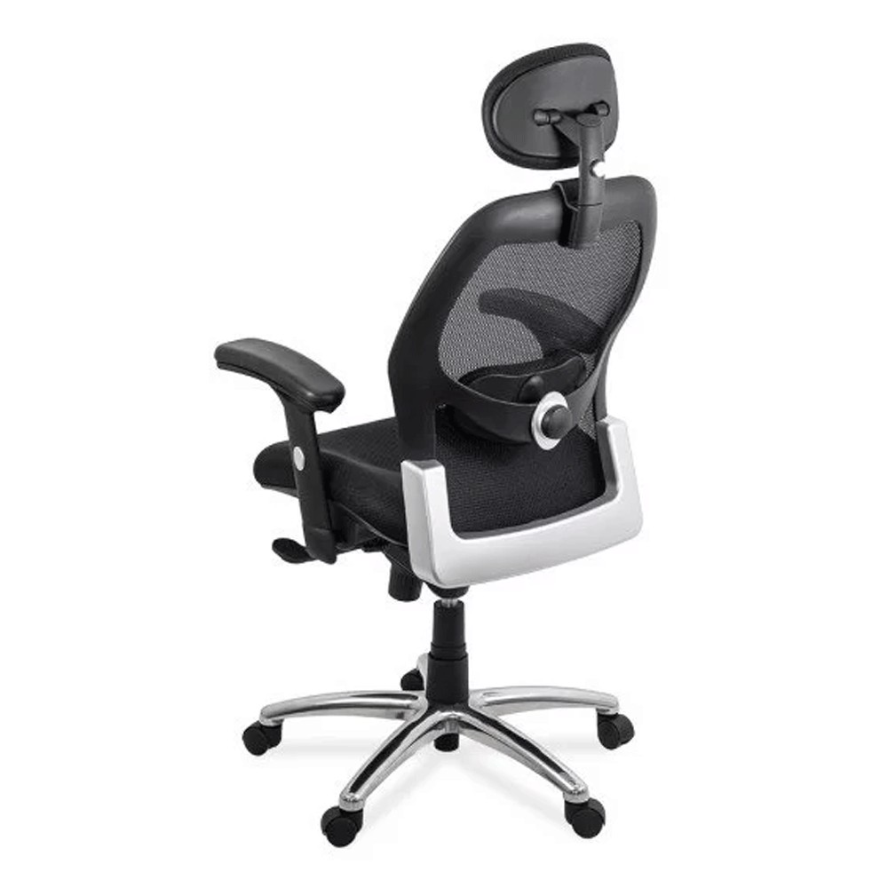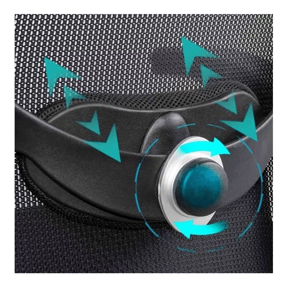 • Spătarul din plasă bine conturat, de culoare neagră, oferă ventilație și stil. Suportul lombar reglabil asigură susținere suplimentară pentru partea inferioară a spatelui, contribuind la reducerea oboselii.