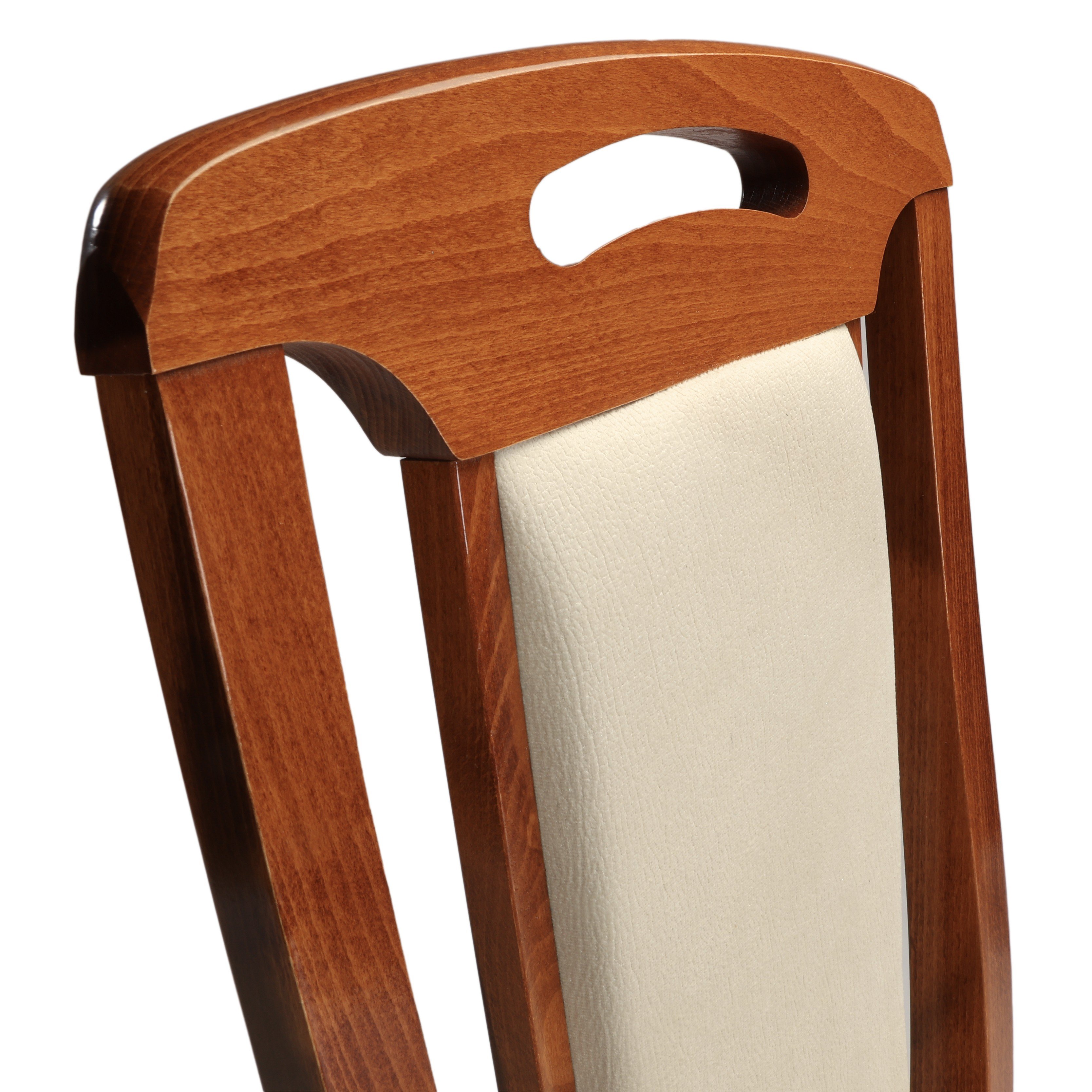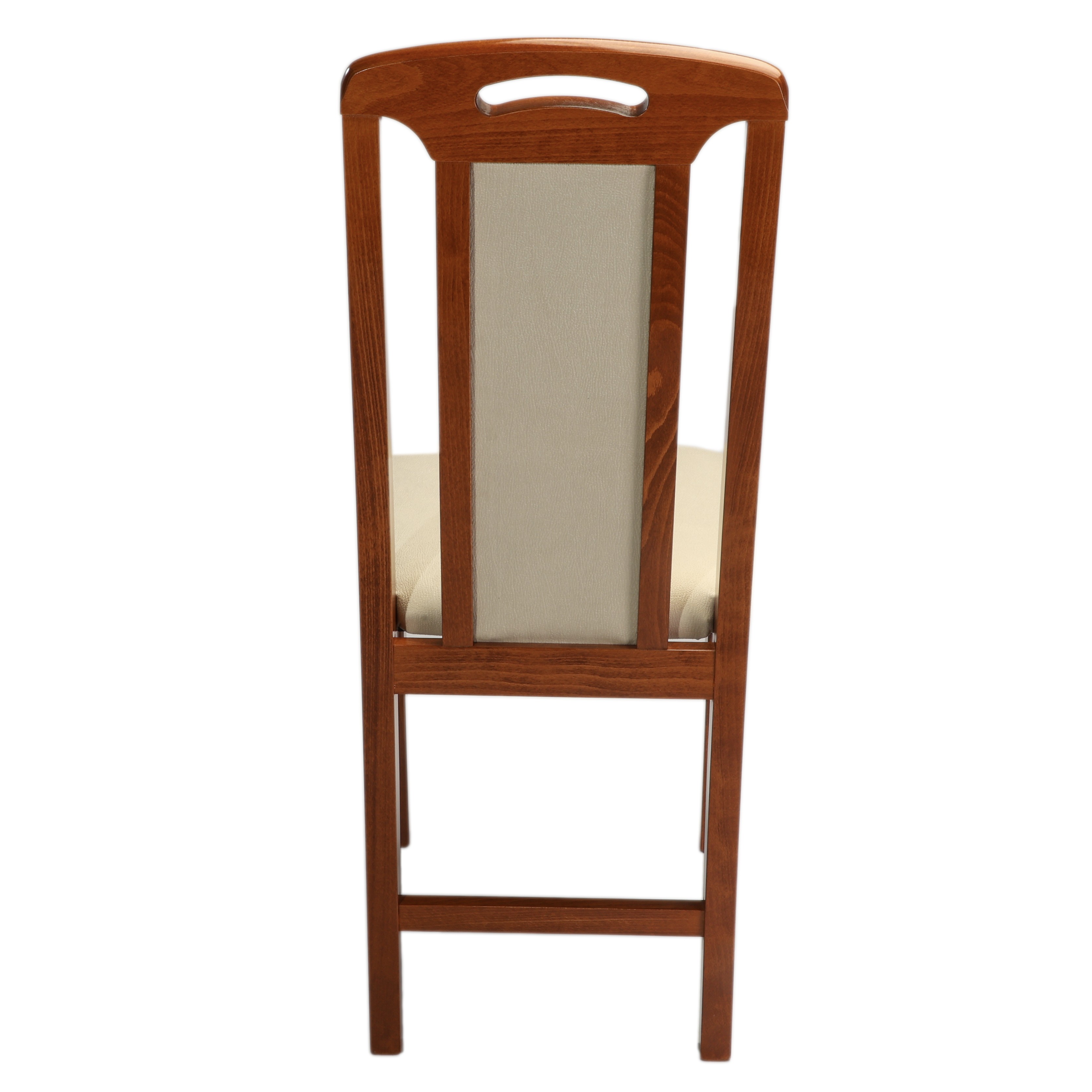 Cadrul scaunul este realizat din lemn de fag iar sezutul si spatarul partial tapitat cu stofa placuta la atingere.