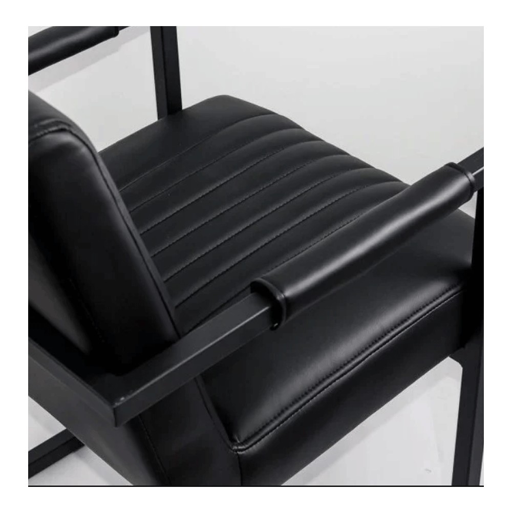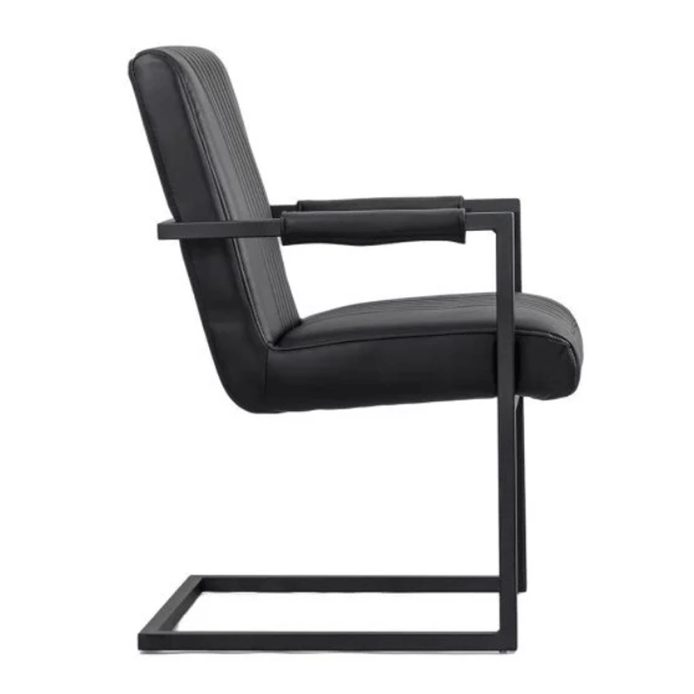 Baza patrata din otel asigura stabilitate si suport fiind prevazuta cu aparatoare pentru podea. Bratele acoperite cu piele ecologica asigura confort in cazul sederii prelungite.