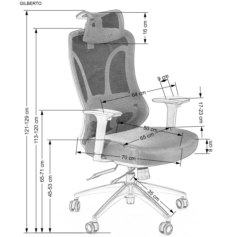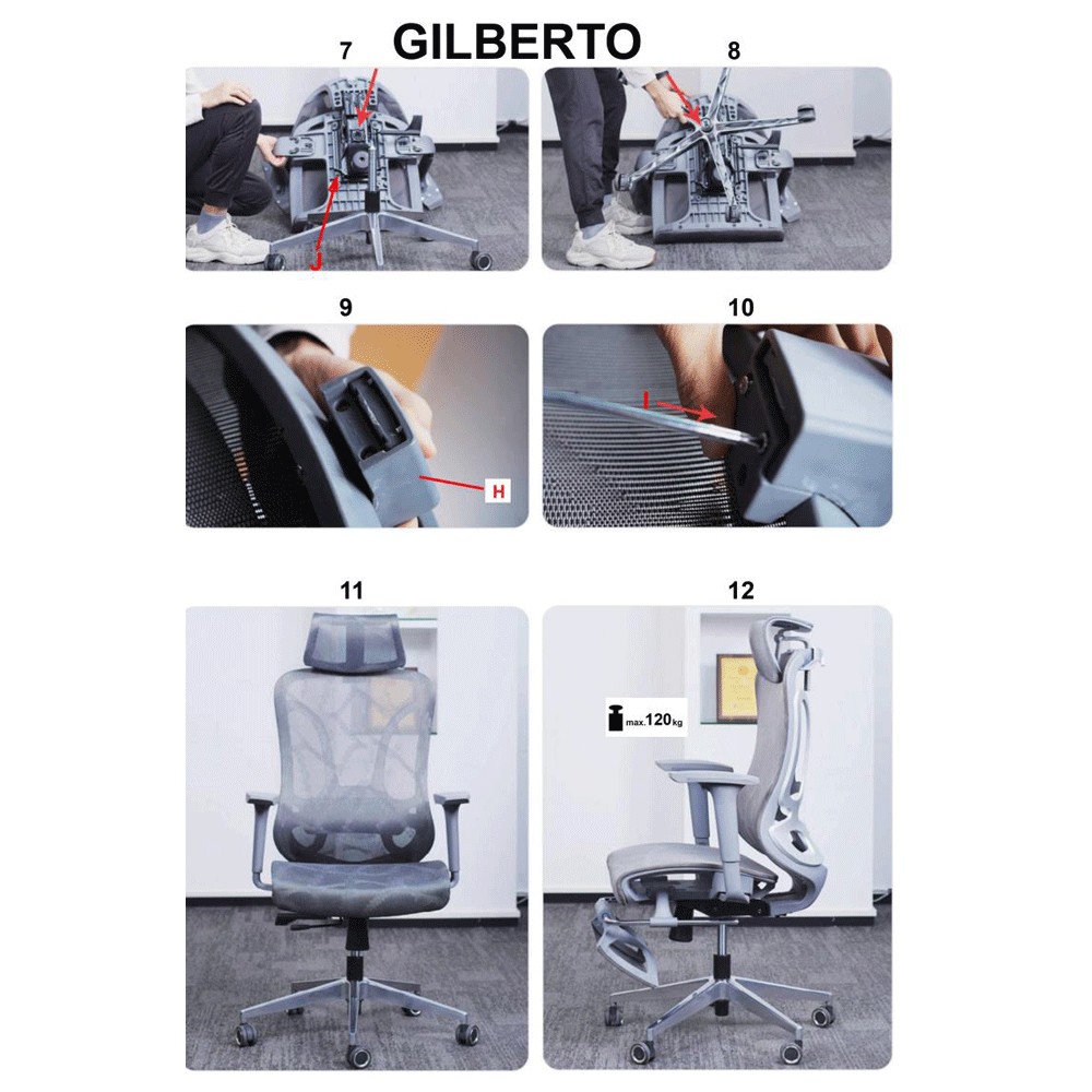 Scaunul ergonomic HM Gilberto ofera 4 puncte de sprijin (cap/spate/sold/maini) si un sprijin lombar adecvat. Scaunul HM Gilberto a fost proiectat pentru a raspunde diferitelor nevoi, cu inaltimea scaunului, reglarea tetierei, suportul lombar si reglarea suportului pentru spate, potrivite pentru o sedere lunga si pentru a reduce durerea.Â