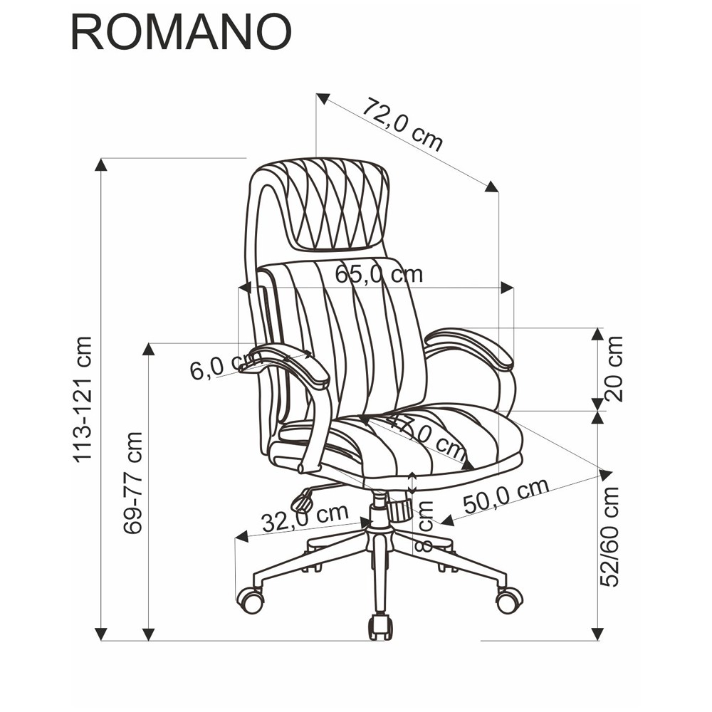 Scaunul directorial HM Romano este conceput pentru a oferi un nivel maxim de confort si suport pe tot parcursul zilei de lucru. Spatarul inalt si pernele groase din spuma de inalta densitate ofera o sustinere excelenta pentru coloana vertebrala, reducand tensiunea si oboseala. Tetiera reglabila suplimenteaza confortul, oferind suport pentru zona cervicala si prevenind durerile de gat.