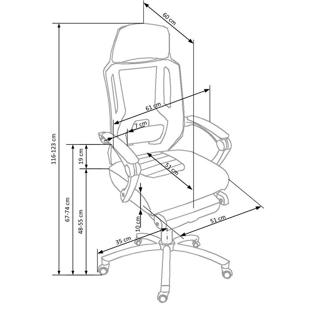 - piston pentru reglarea inaltimii sezutului de la 48 cm pana la 55 cm