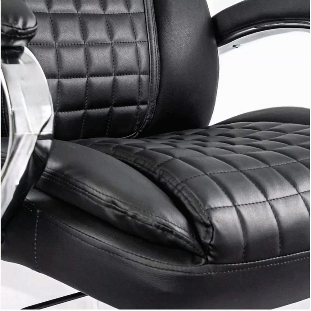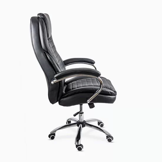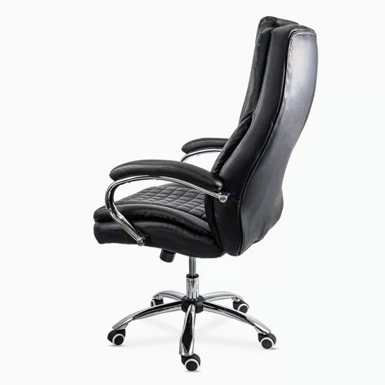 Scaunul de birou OFF 633 este confectionat din piele ecologica de inalta calitate, un material rezistent, usor de curatat si placut la atingere. Tapiteria este atent realizata, oferind atat un aspect sofisticat, cat si o rezistenta crescuta la uzura zilnica. Baza solida din otel cromat, alaturi de pistonul pneumatic de ridicare, garanteaza stabilitate maxima si o sustinere ferma, indiferent de greutatea utilizatorului.