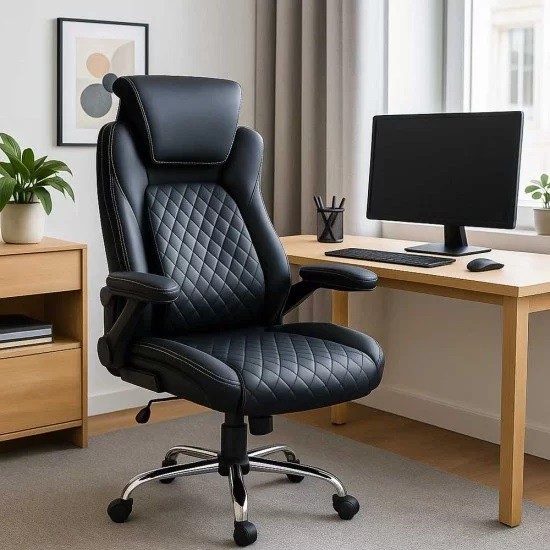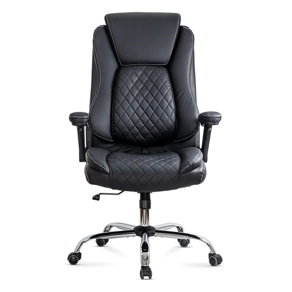 Scaunul directorial OFF 651 este alegerea ideala pentru birou sau home office, oferind confort premium si suport ergonomic avansat. Dispune de tetiera reglabila, suport lombar ajustabil, cotiere rabatabile si reglabile, precum si mecanism cu balans si piston pentru reglarea pe inaltime. Tapiteria din piele ecologica neagra cu cusaturi decorative adauga eleganta, iar baza metalica cu roti gumate silentioase ofera stabilitate si protectie pentru parchet. Ideal pentru ore lungi de lucru, OFF 651 imbina designul profesional cu functionalitatea si adaptabilitatea necesara unei posturi corecte.