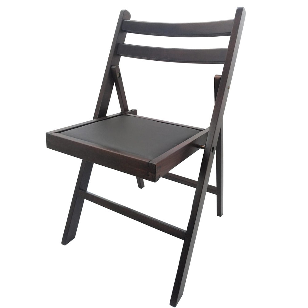 Scaun pliant lemn masiv, bucatarie si living, sezut tapitat cu piele ecologica, 100 kg, wenge