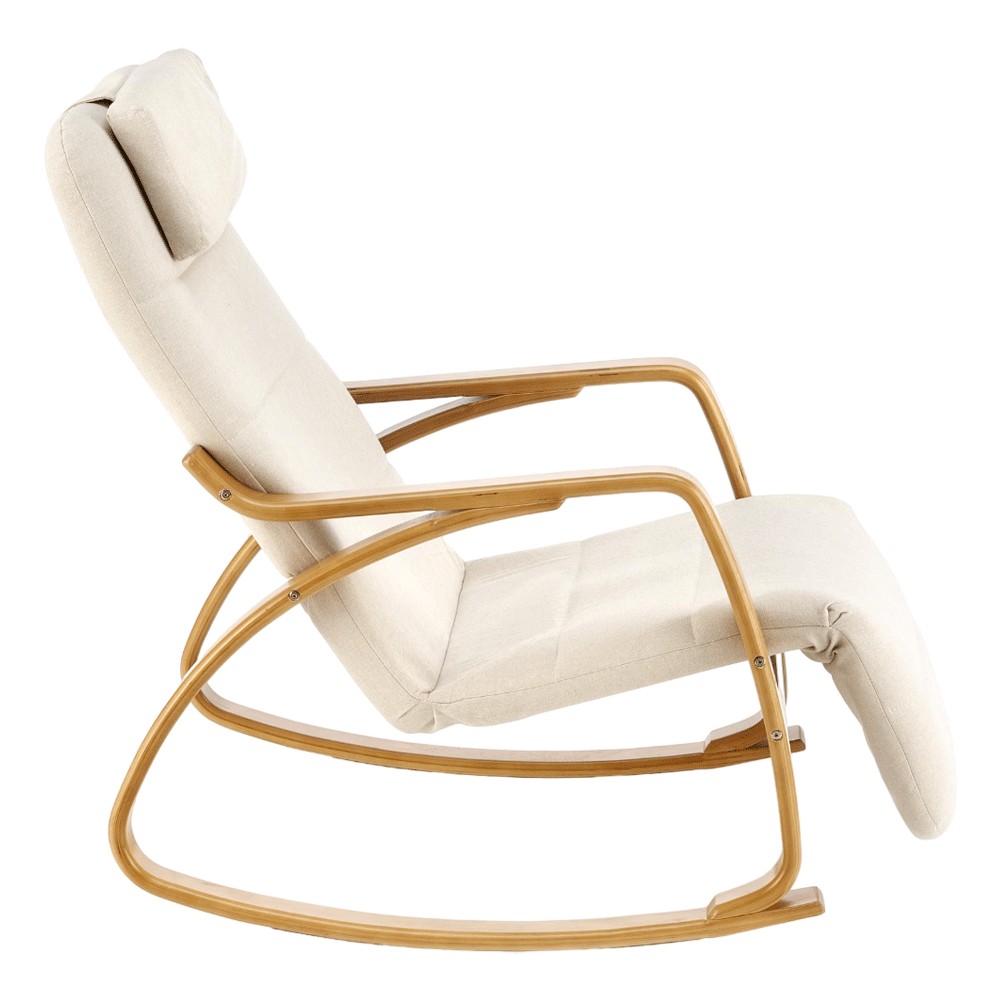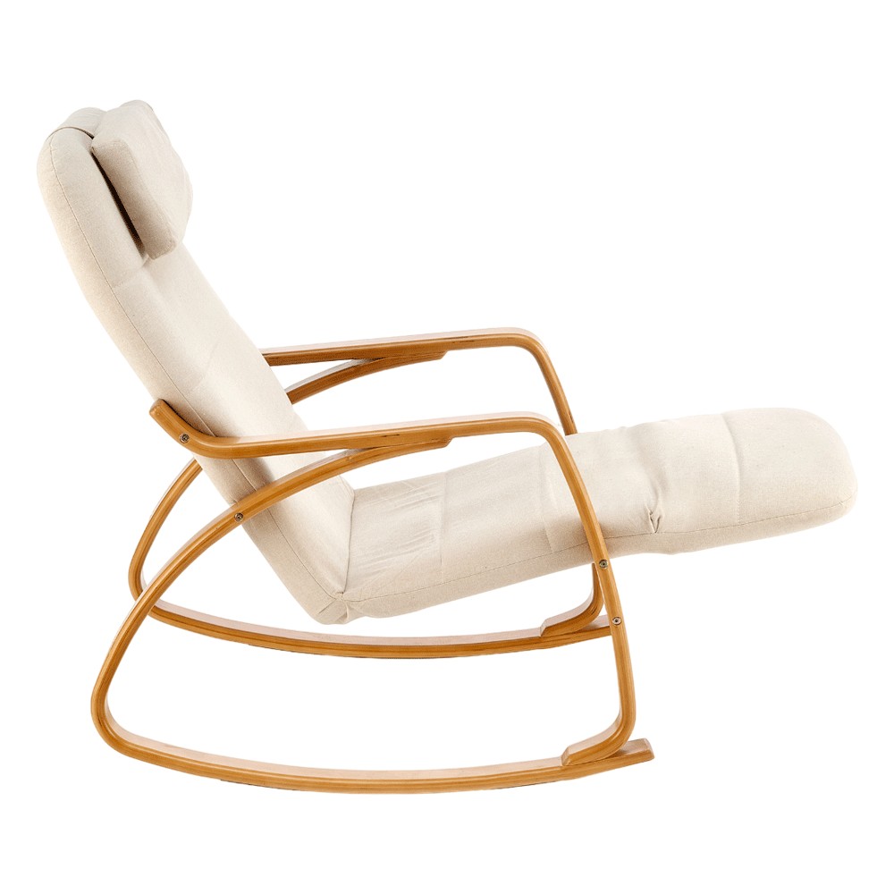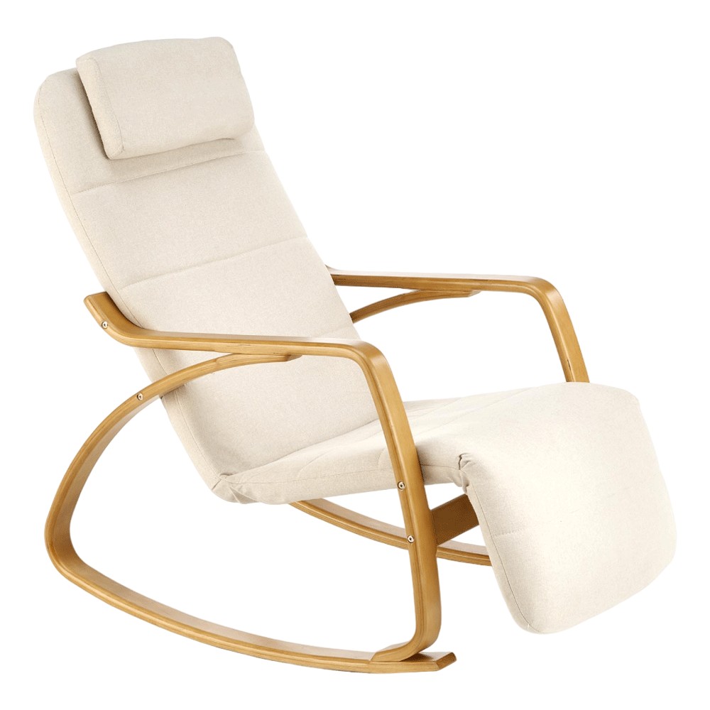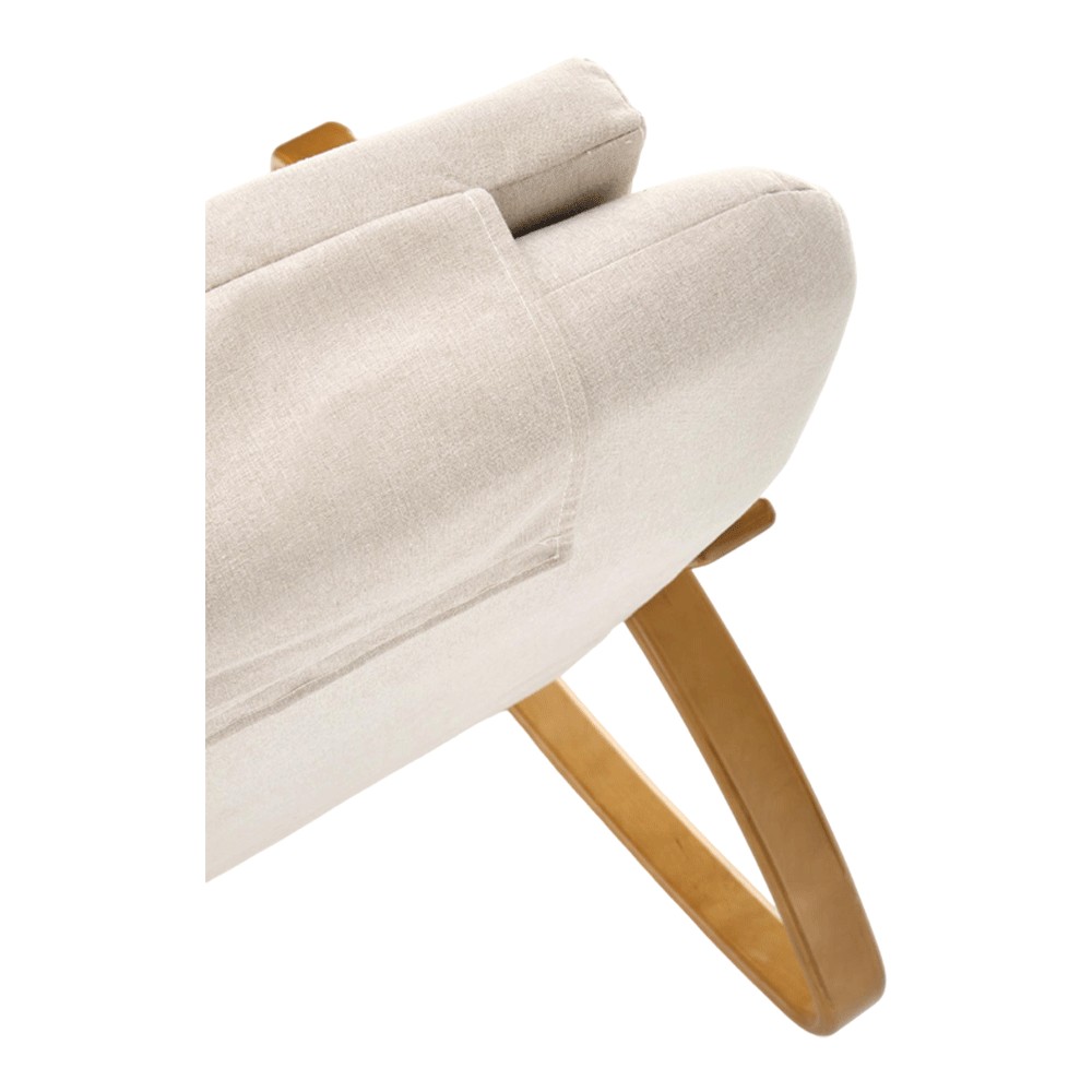 Scaun balansoar HM Prime, cu suport pentru picioare reglabil, tapiterie stofa, lemn masiv, bej