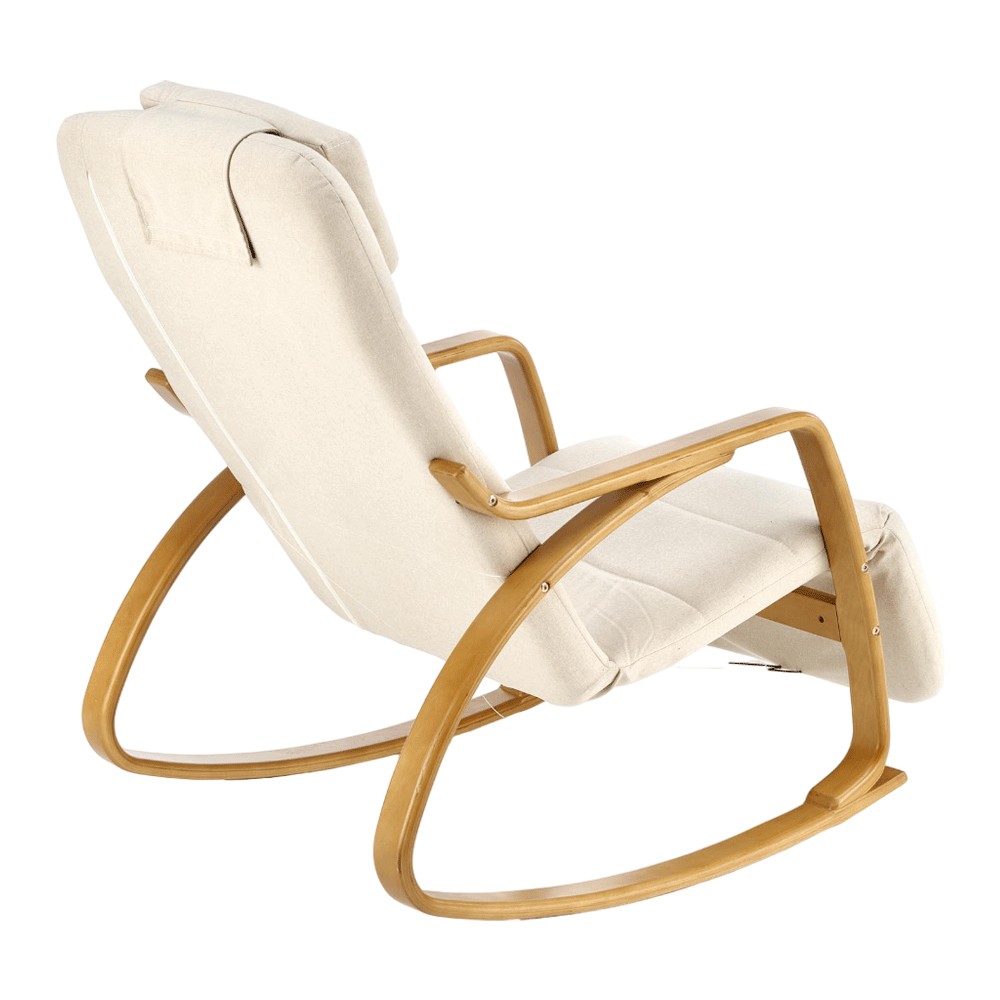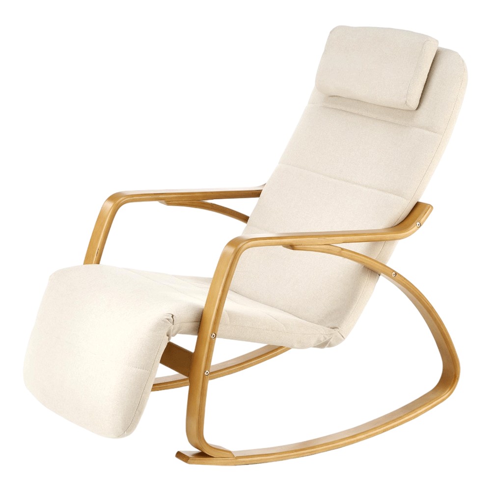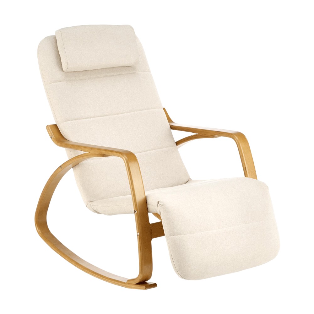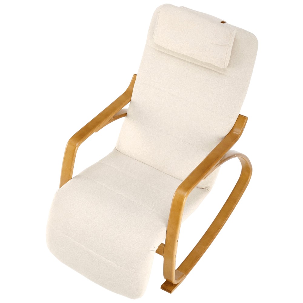 Scaun balansoar HM Prime, cu suport pentru picioare reglabil, tapiterie stofa, lemn masiv, bej