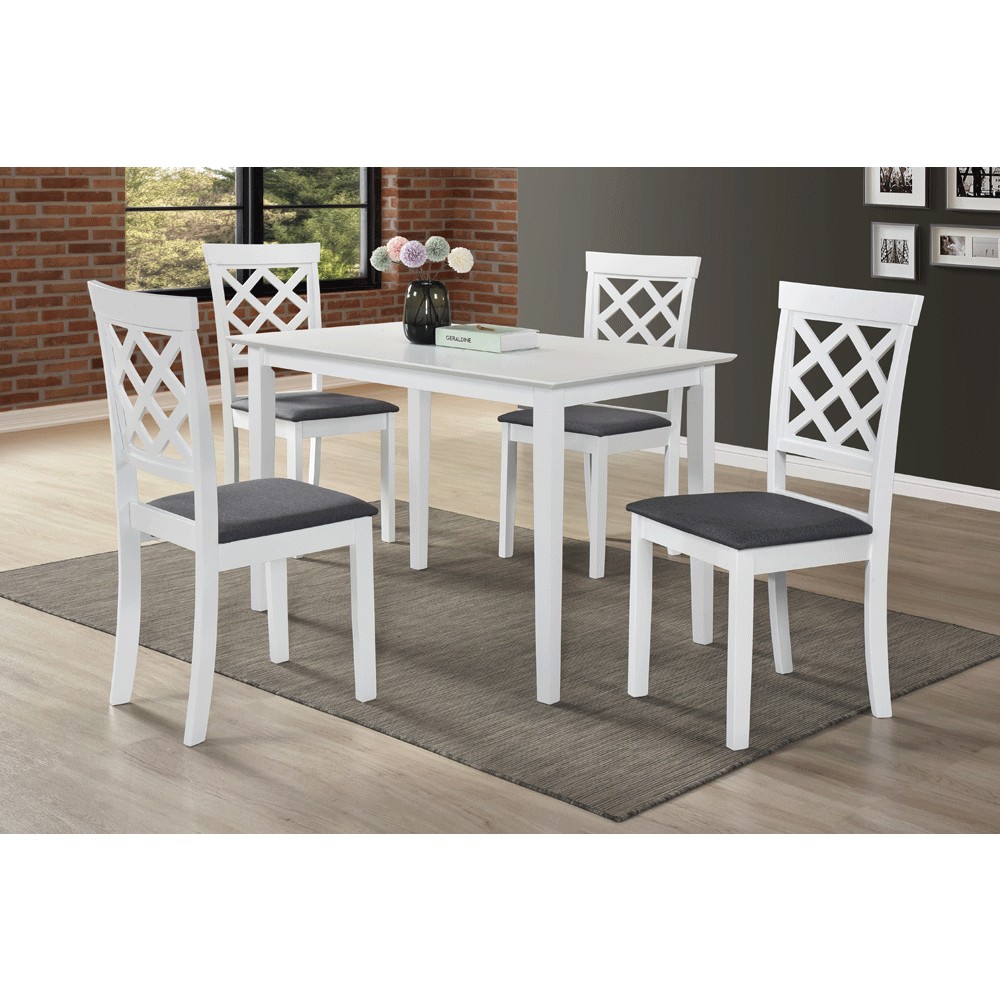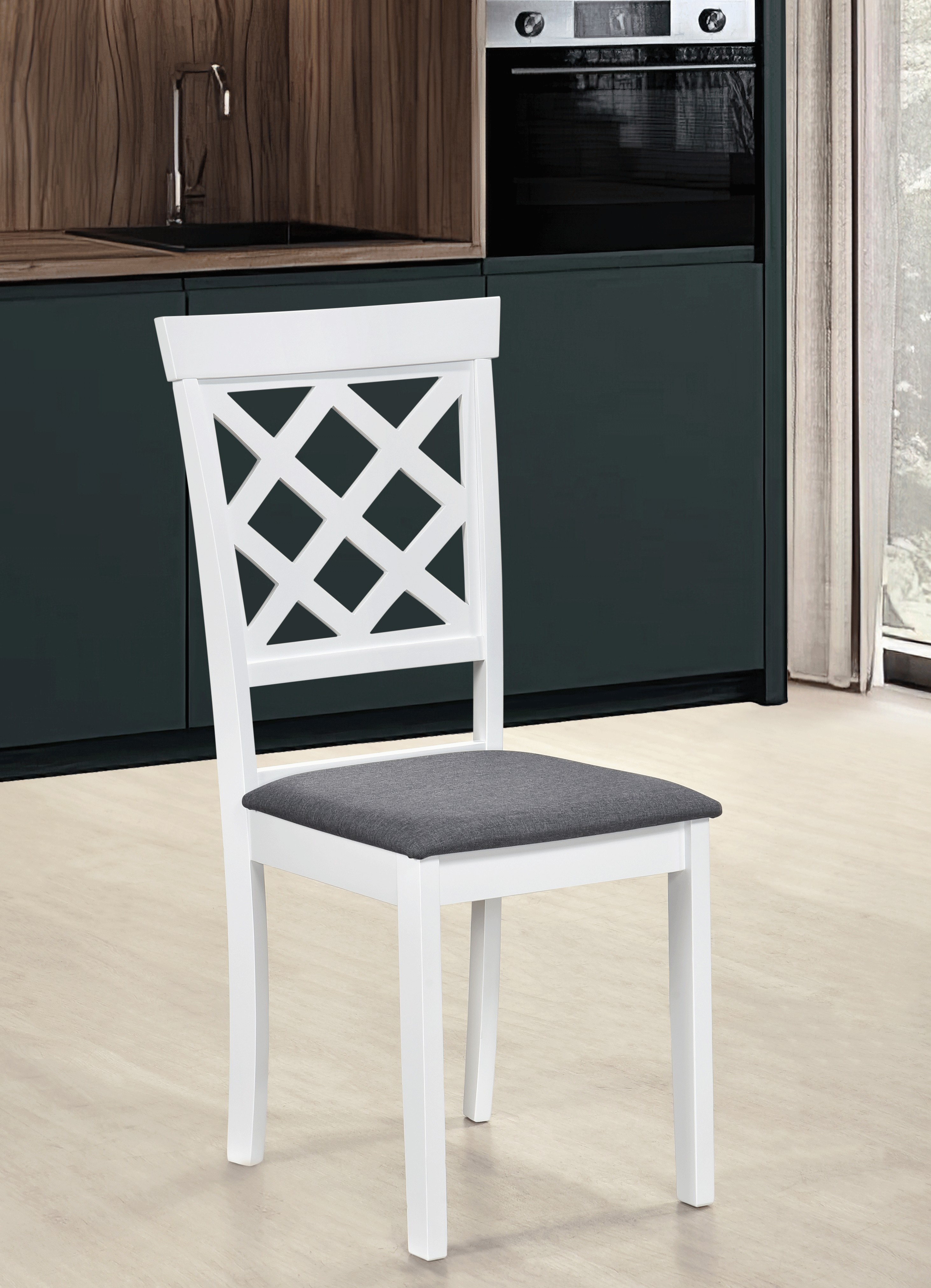 Adauga un plus de stil bucatariei sau livingului tau cu scaunul Vienna, realizat din lemn si cu un spatar decorat cu model romb elegant. Confortul este asigurat de sezutul tapitat in stofa gri, iar designul modern se potriveste perfect in orice decor.