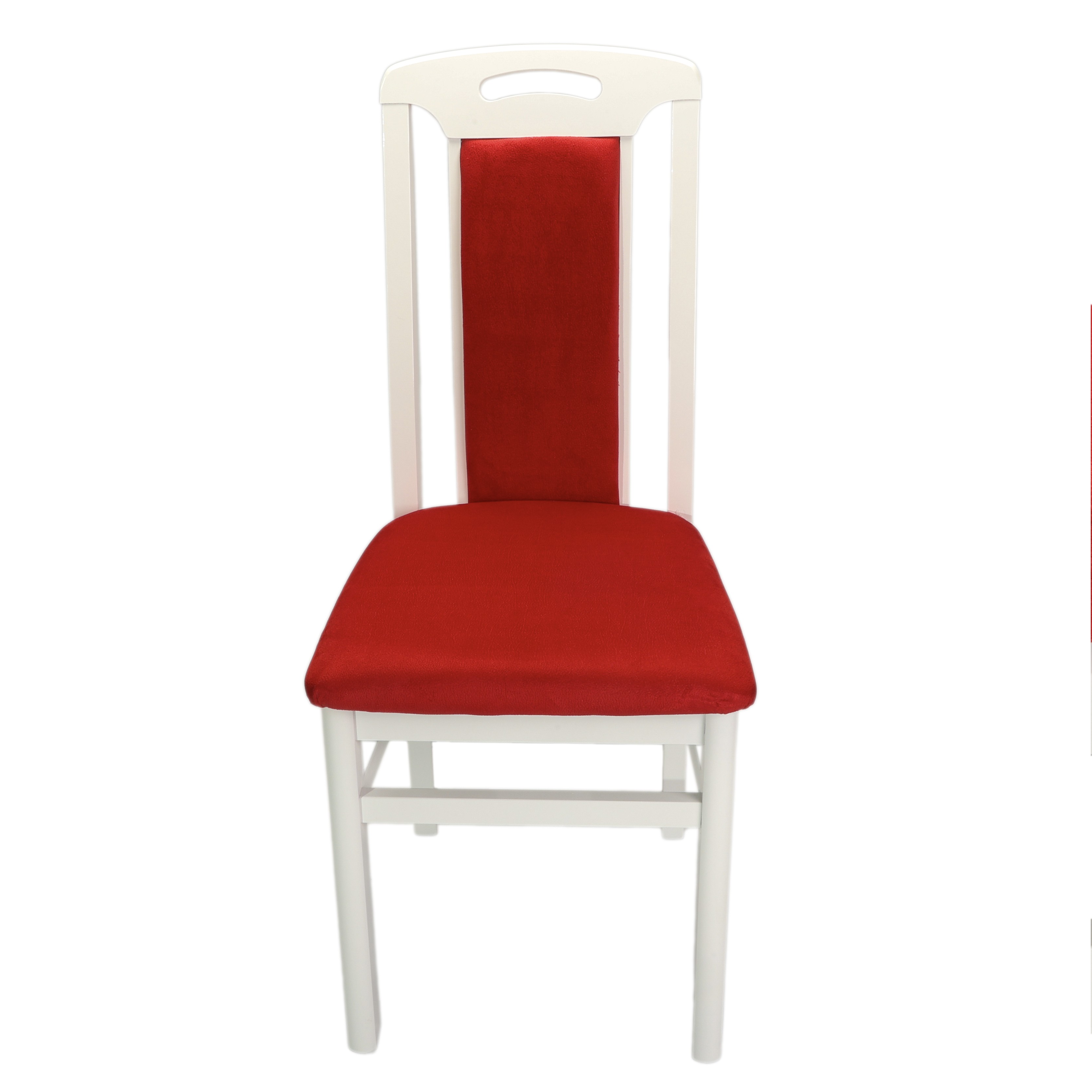 Scaun de living si bucatarie, SB Tim, din lemn masiv fag, tapiterie stofa, lacuit, 120 kg, 96x43x40 cm, Alb/Rosu