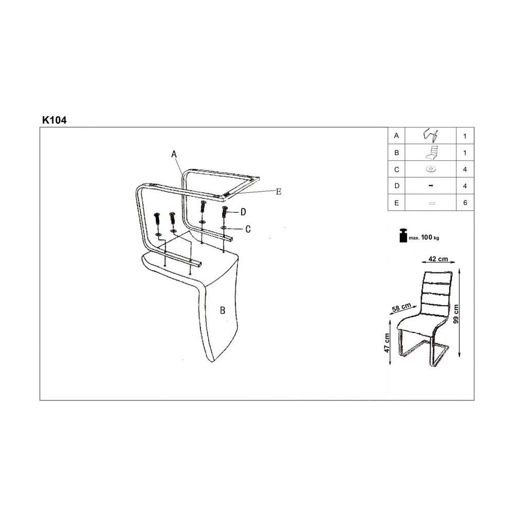 Structura scaunului K104 este din metal cromat, sezutul este imbracat in piele ecologica iar spatarul este din piele ecologica alba si placaj lacuit negru, exact ce ai nevoie pentru a pune in valoare decorul bucatariei tale sau a livingului.
