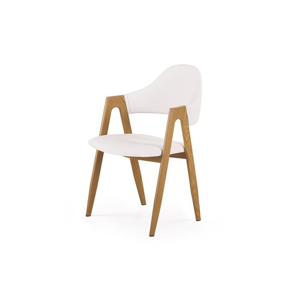 Scaunul K247 este un scaun de living, dar poate fi folosit si intr-o bucatarie moderna. Sezutul si spatarul sunt tapitate cu piele ecologica, iar picioarele sunt din metal vopsit.