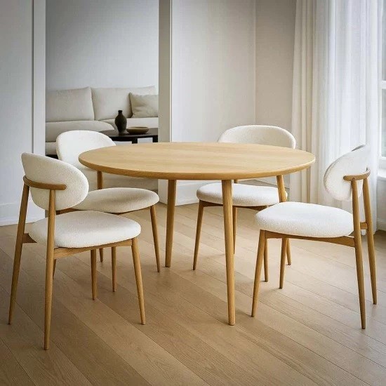 Scaunul dining BUC283 este o piesa eleganta si confortabila, perfecta pentru orice sufragerie moderna sau clasica. Tapitat cu boucle moale si placut la atingere, acest scaun se remarca prin designul ergonomic, sezutul gros si spatarul curbat, oferind sustinere optima. Cadrul metalic cu aspect de lemn natural imbina stilul cu durabilitatea, iar forma compacta il face ideal pentru spatii restranse. Este o alegere versatila, usor de integrat in diverse decoruri, aducand echilibru intre estetica si functionalitate.