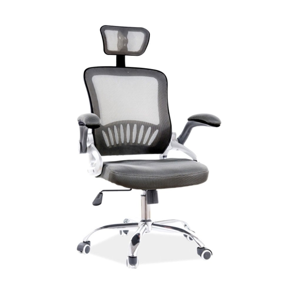 Scaunul este un scaun de birou practic, ergonomic, cu spatar inalt si tetiera. Spatarul si tetiera sunt tapite cu mesh. Stofa mesh perforata este un material special conceput pentru a va oferi un confort sporit si o buna aerisire a corpului. Materialul este foarte rezistent si usor de intretinut. Textura stofei mesh ofera confort in orice anotimp, vara ajuta la evitarea transpiratiei excesive, iar in anotimpul rece ajuta la pastrarea unei temperaturi optime. Bratele sunt mobile.