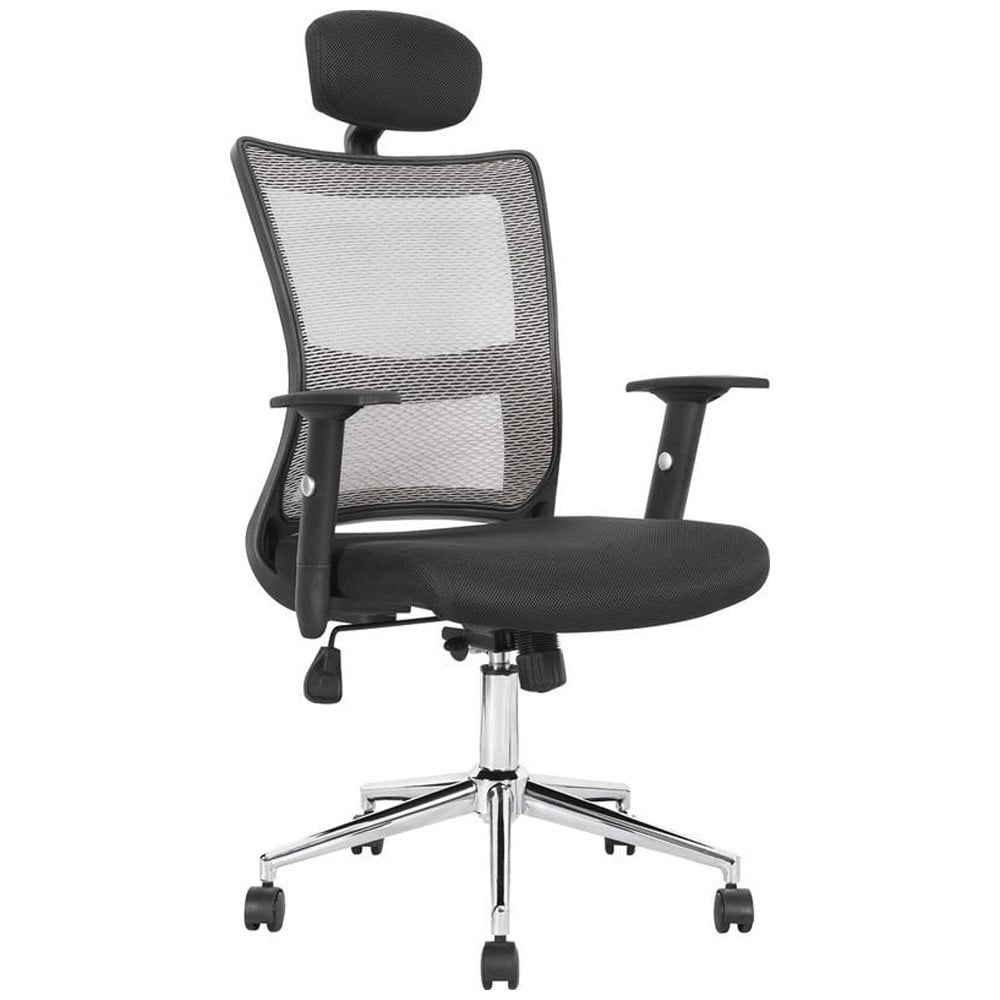 Scaun directorial HM Neon gri, mesh, brate ajustabile, inaltime reglabila, cadru cromat, 100 kg, negru/gri
