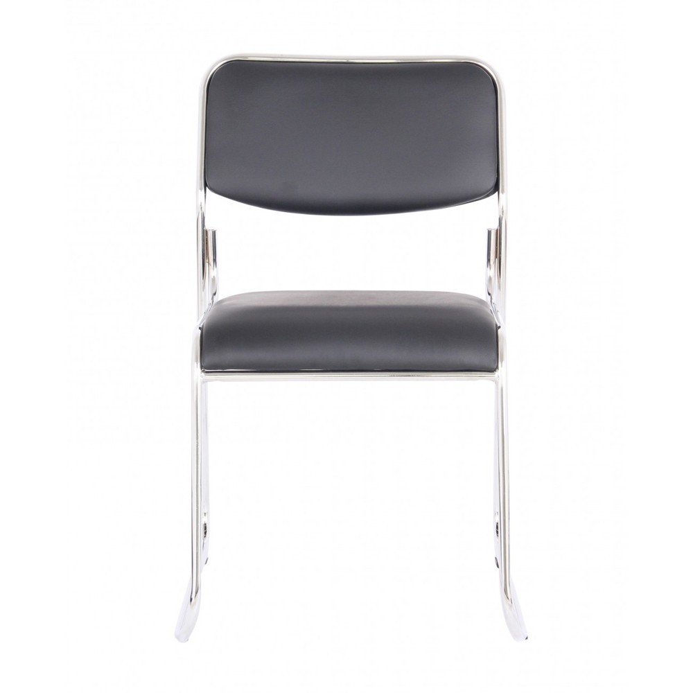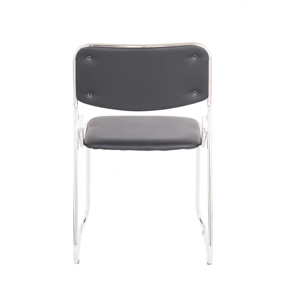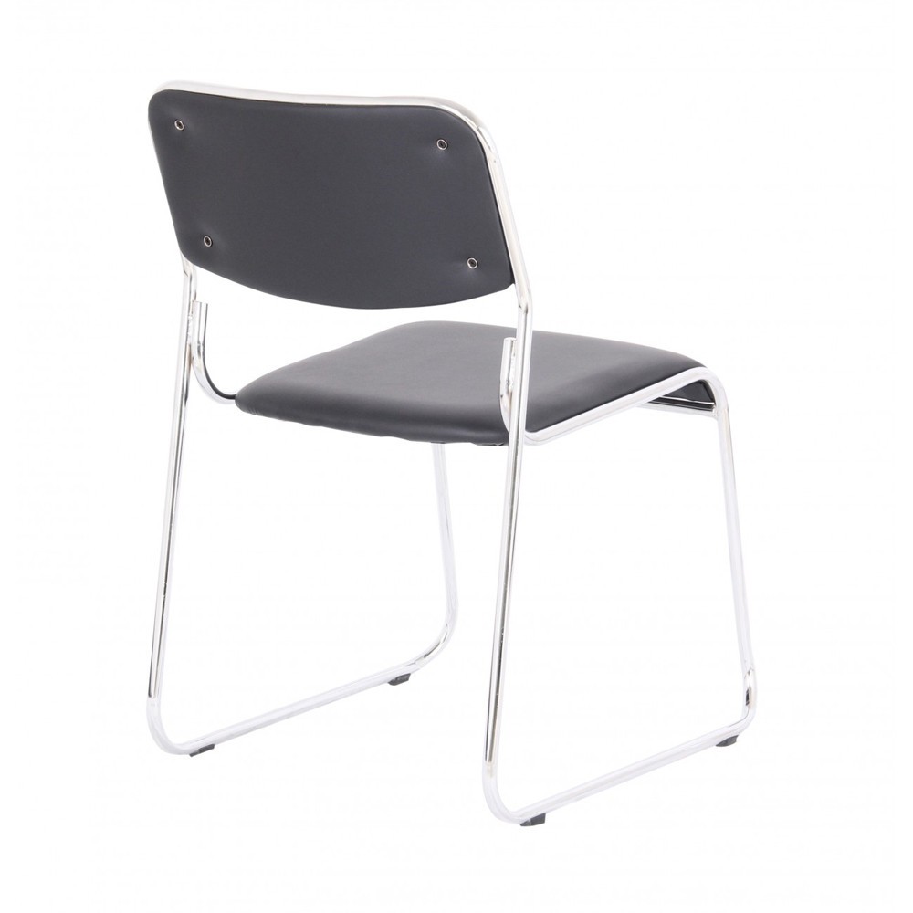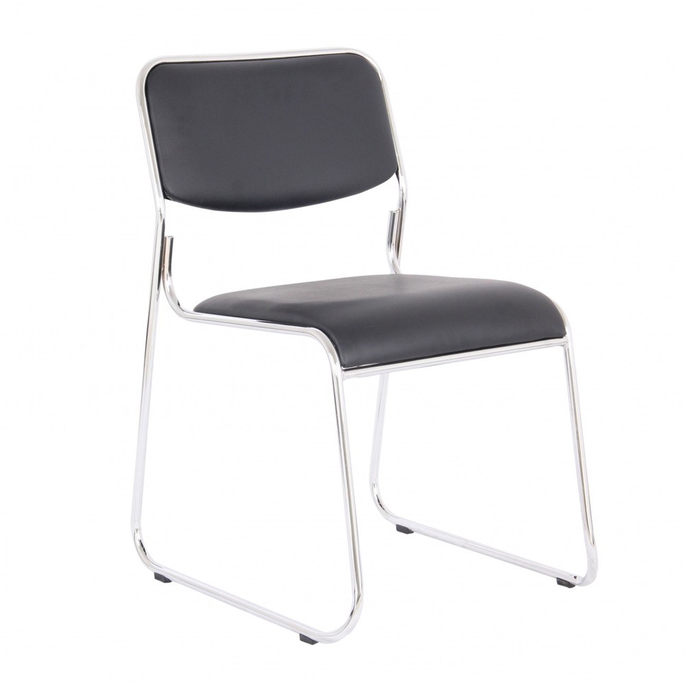 Cadrul scaunului vizitator este metalic cu finisaj cromat, iar sezutul si spatarul sunt tapitate cu piele ecologica PVC.