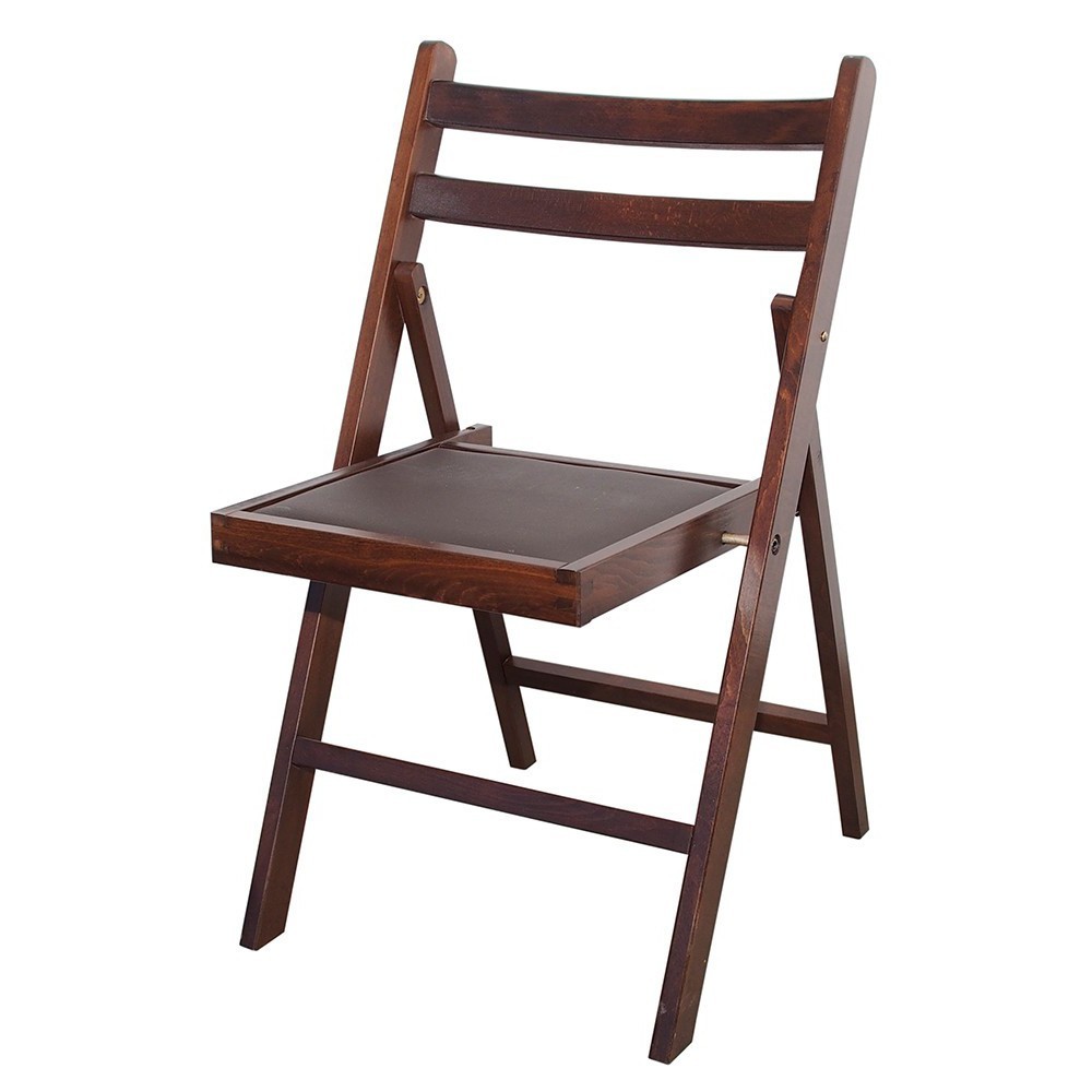 Acest scaun pliant din lemn de fag are sezutul tapitat cu piele ecologica. Scaunul se pliaza pentru a nu ocupa spatiu, are patru picioare, fiind foarte confortabil si sigur, neexistand riscul de a aluneca cu el. Este perfect adaptat pentru spatii inguste si poate fi depozitat cu usurinta.