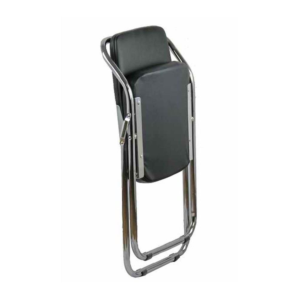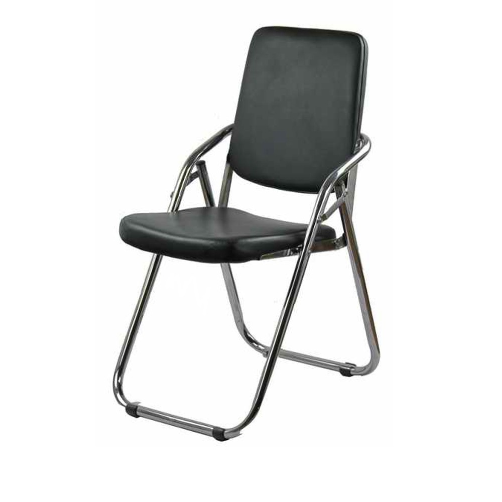 Scaunul de vizitator pliabil este realizat dintr-un cadru metalic cromat, foarte rezistent. Sezutul si spatarul sunt realizate din burete tapitat cu piele ecologica rezistenta la uzura si usor de curatat. Spatarul este curbat pe spate pentru a nu exercita presiune asupra coloanei vertebrale.