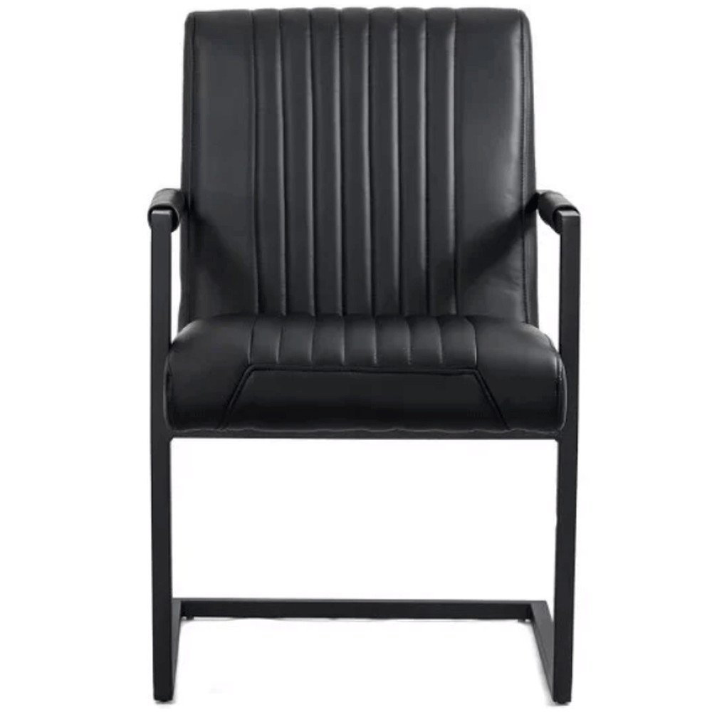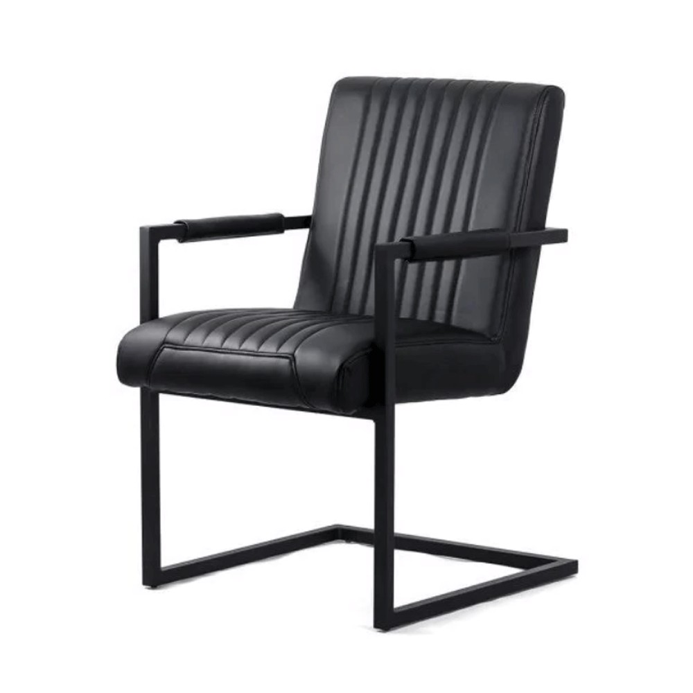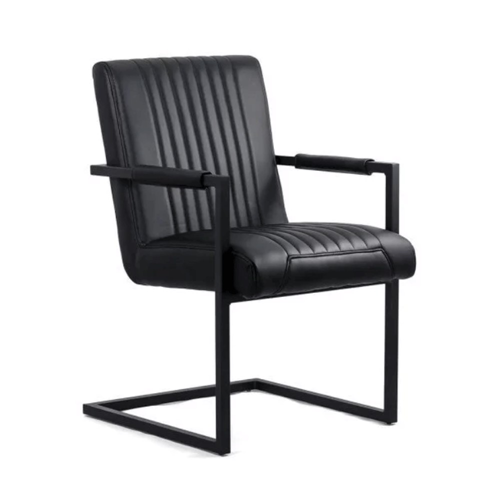 Baza patrata din otel asigura stabilitate si suport fiind prevazuta cu aparatoare pentru podea. Bratele acoperite cu piele ecologica asigura confort in cazul sederii prelungite.