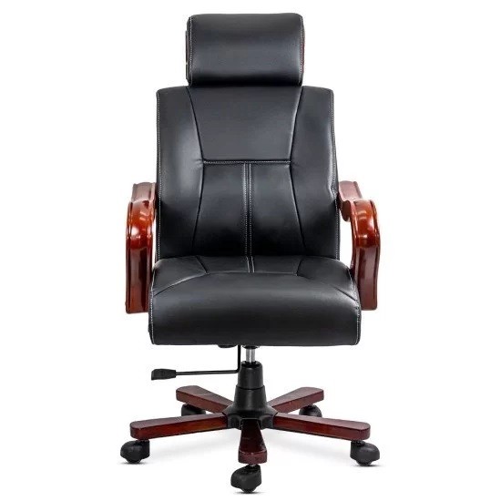 Acest scaun impresioneaza prin combinatia dintre robustete si rafinament. Baza si bratele din lemn masiv ofera un suport stabil si rezistent, completand perfect estetica profesionala a biroului tau. Tapiteria din piele ecologica nu doar ca arata impecabil, dar este si usor de intretinut, fiind placuta la atingere si durabila in timp.