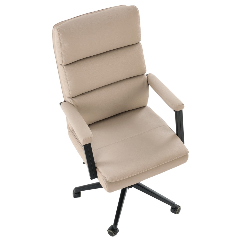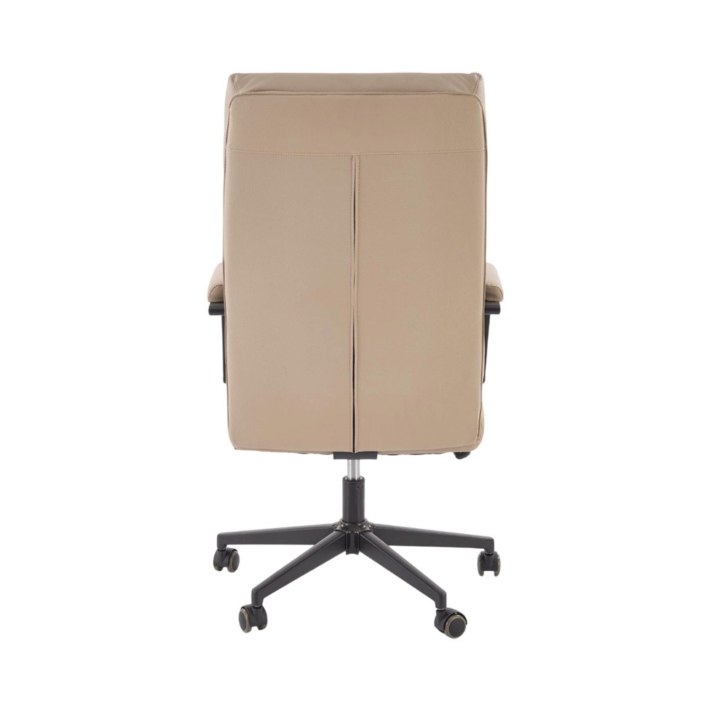 Datorita pistonului pe gaz, inaltimea scaunului se poate ajusta cu usurinta intre 107 si 113 cm, astfel incat sa poti adapta pozitia de lucru in functie de birou si de preferintele tale. Tapiteria din piele ecologica, usor de curatat si rezistenta la uzura, confera un aspect profesional si elegant, fara a compromite durabilitatea.