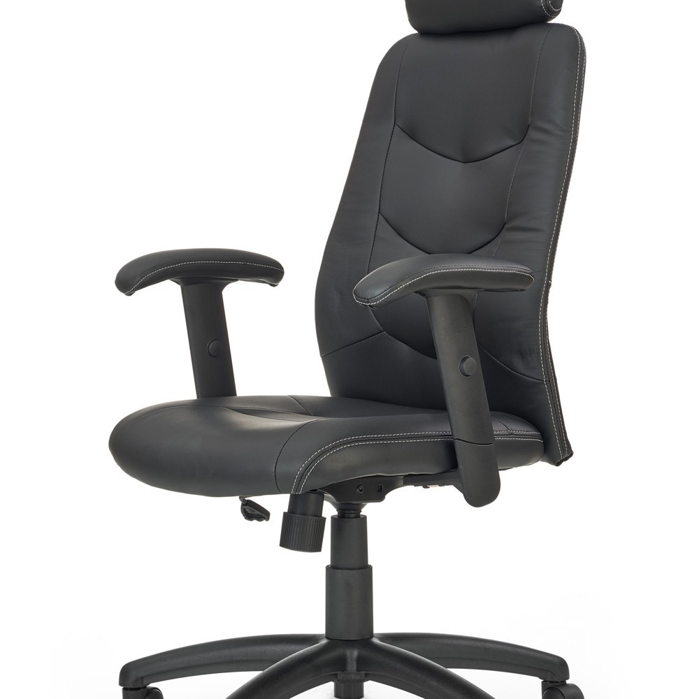 Tapiteria este din piele ecologica de calitate, bratele tapitate sunt reglabile pe inaltime, baza sub forma de stea este realizata din PP mata.