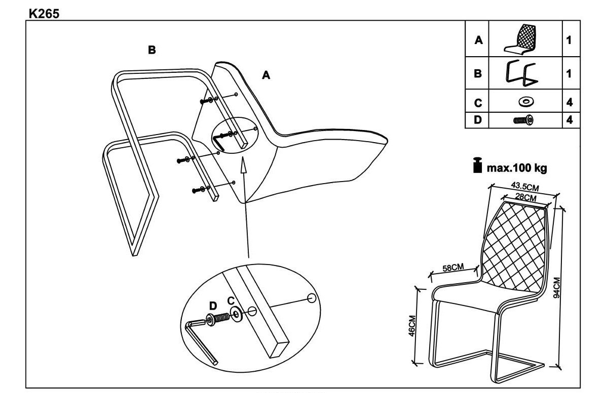 Acest scaun are structura metalica, imbracata in piele ecologica. Pentru un grad de confort marit, sezutul este din spuma poliuretanica.